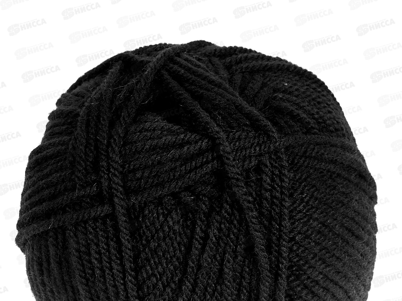 Пряжа Народная черный шерсть/акрил 100гр 220м 02