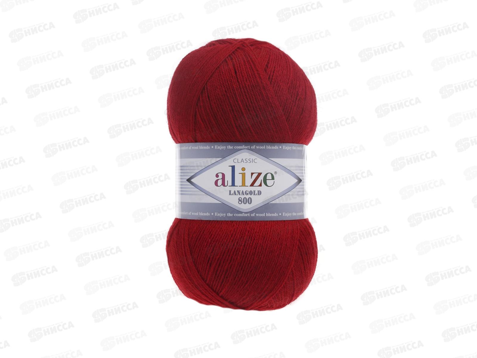 Пряжа Ализе Lana Gold 800 49шерсть+51акрил 100г 800м 56 Красный