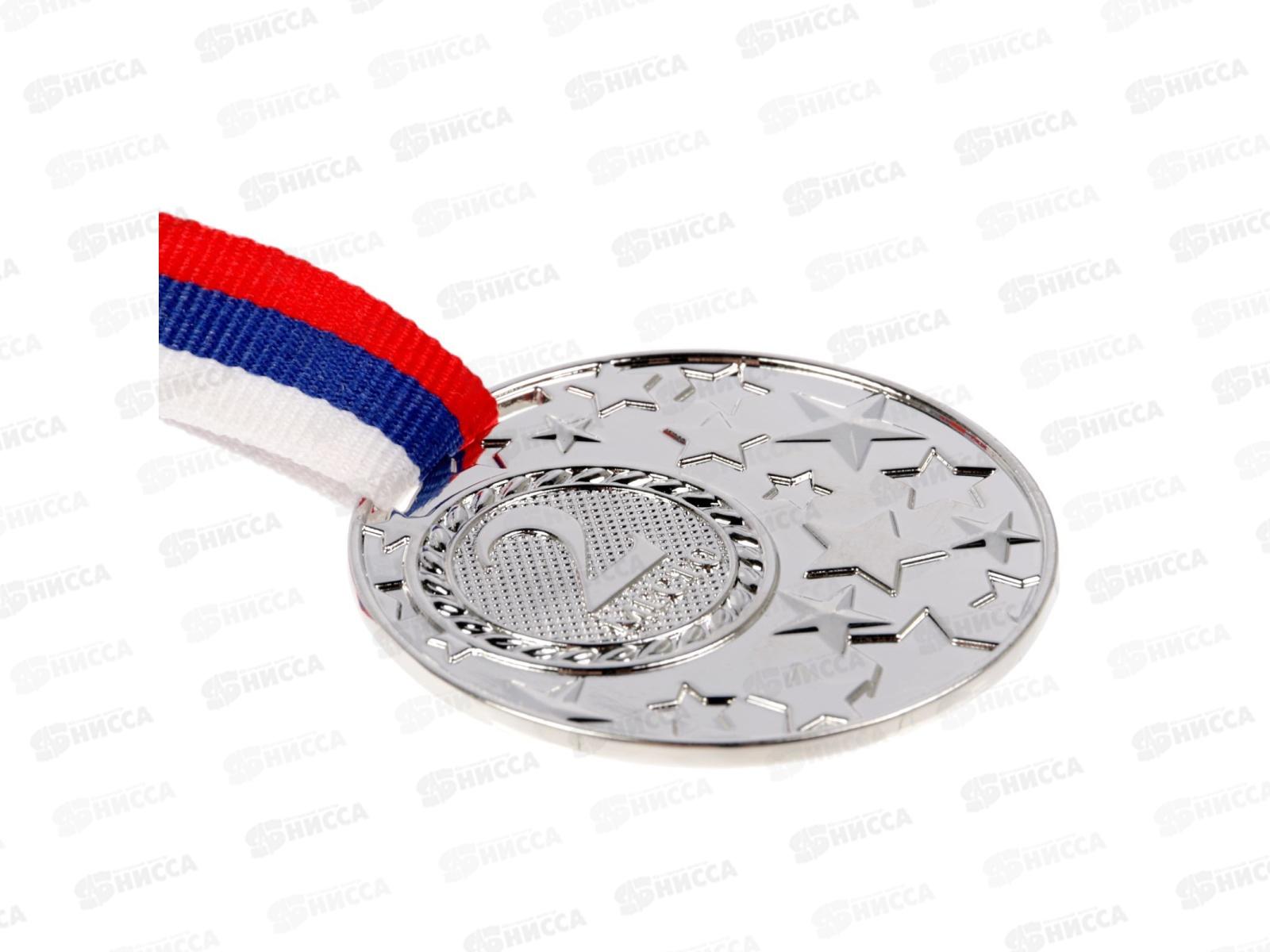 Медаль призовая 058 диам 5см 2место, серебро, с лентой 1672967