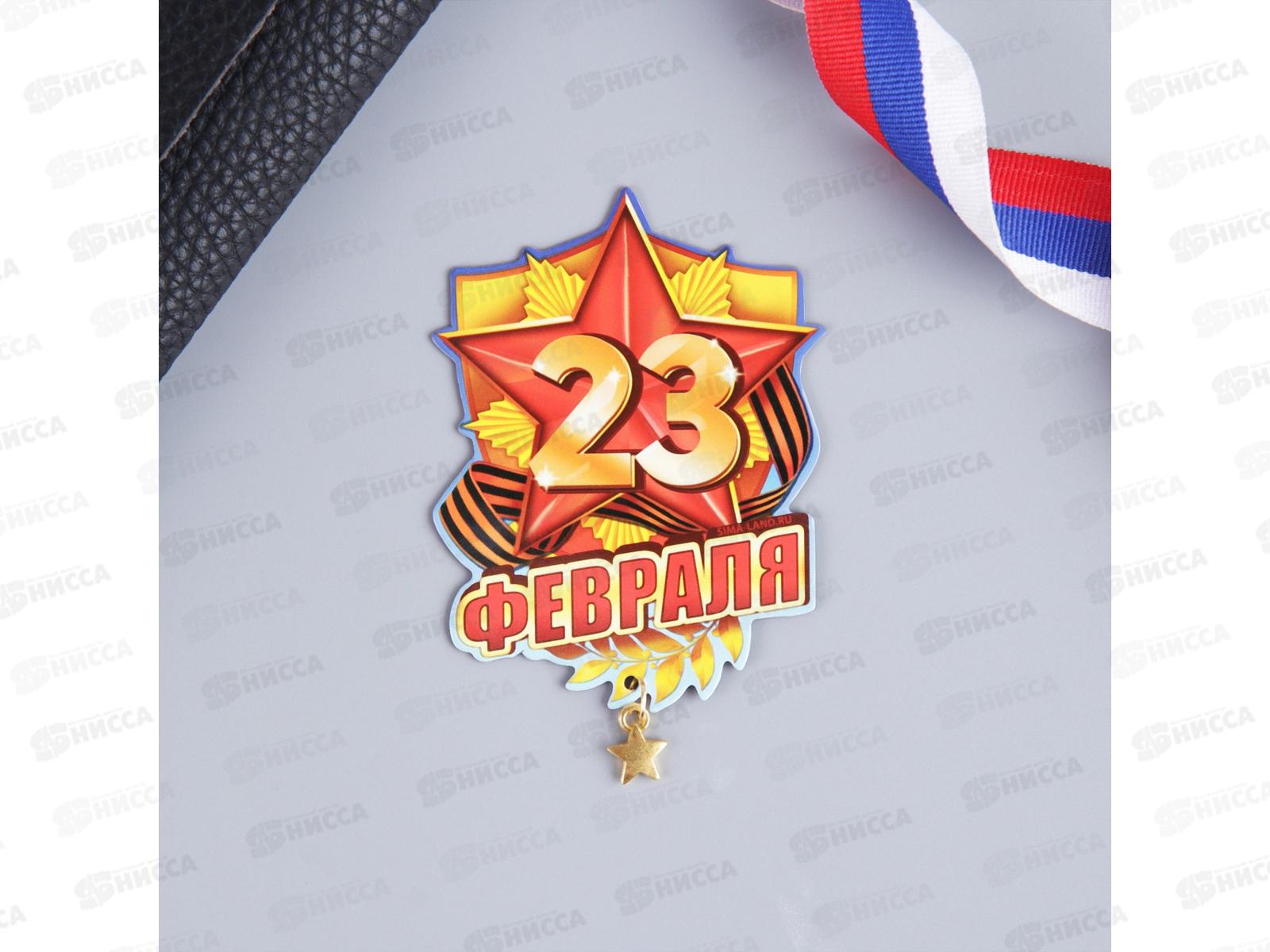 Код:435880; Магнит "23 февраля" звезда 6*8см с доп элементом 2621607