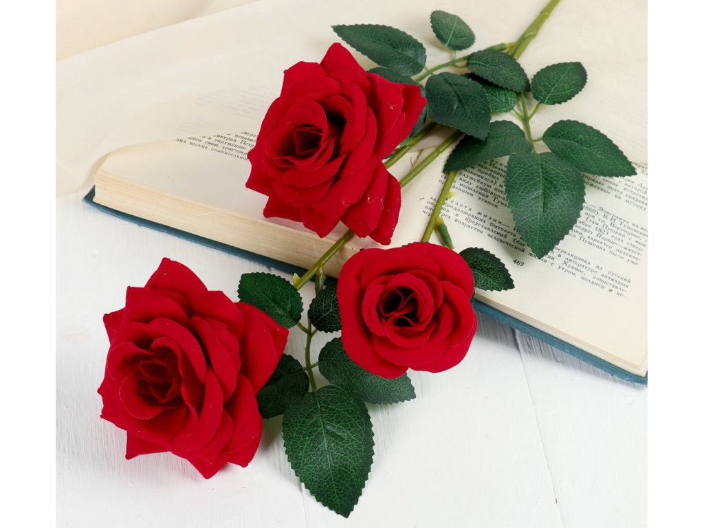 Цветы искусственные 62см Роза триада красный 4301710 *1