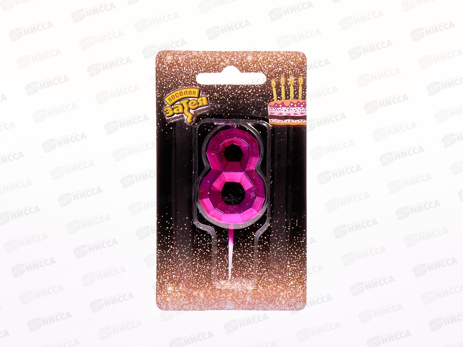Свеча - цифра "8" Диамант Манжента 4,5смV, 1502-4850
