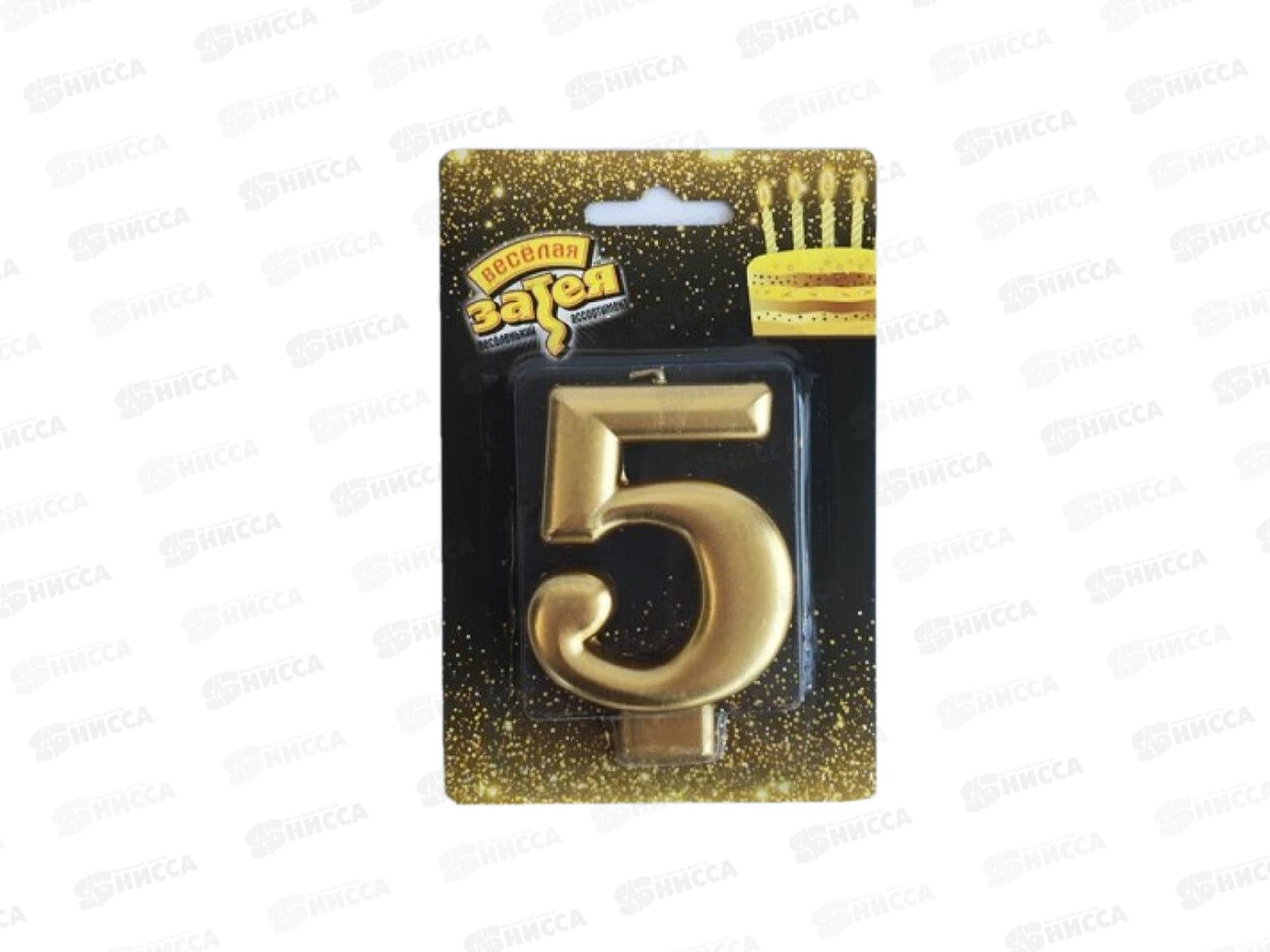 Свеча - цифра "5" Золотая 8см /V, 1502-2838