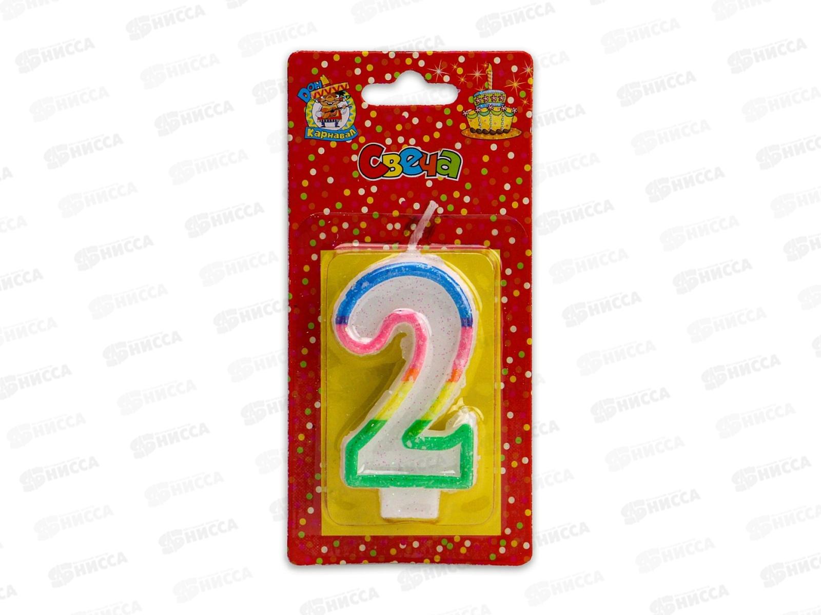 Свеча для торта с окантовкой с блестками Цифра 2, С-2417