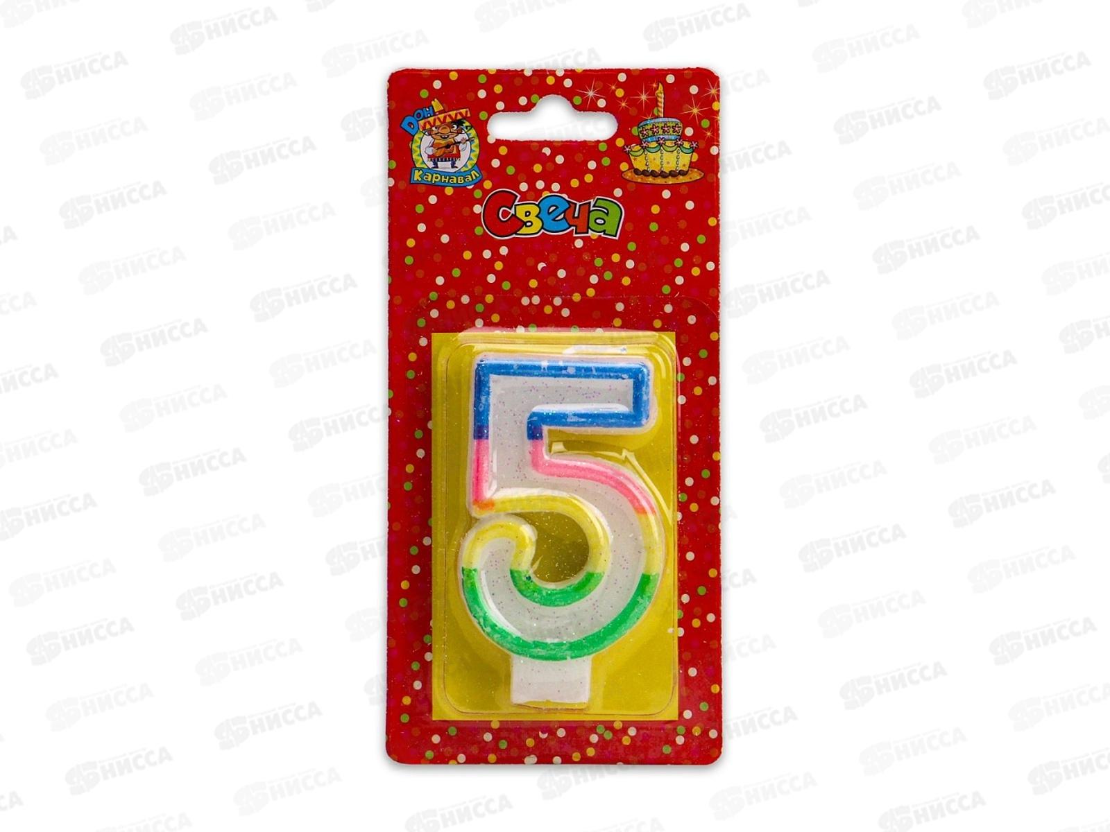 Свеча для торта с окантовкой с блестками Цифра 5, С-2420
