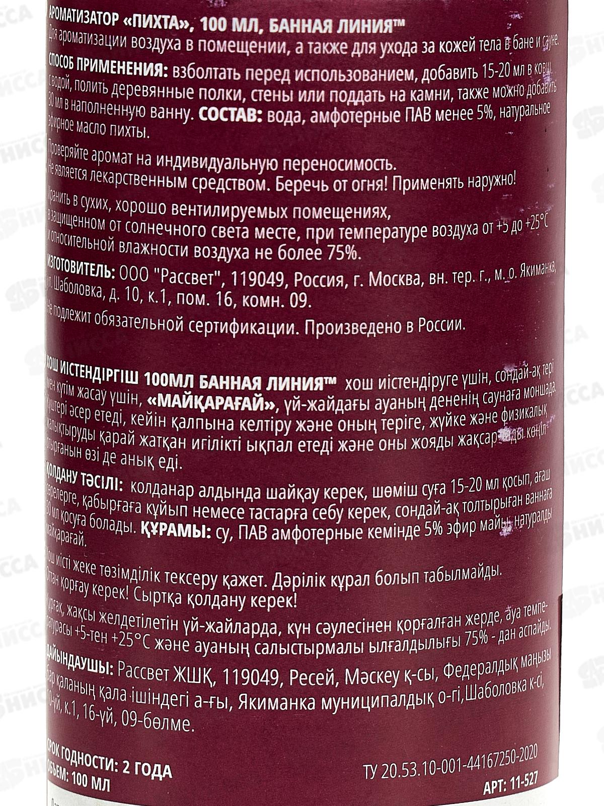 Ароматизатор 100мл "Пихта" Банная линия 11-527 *20