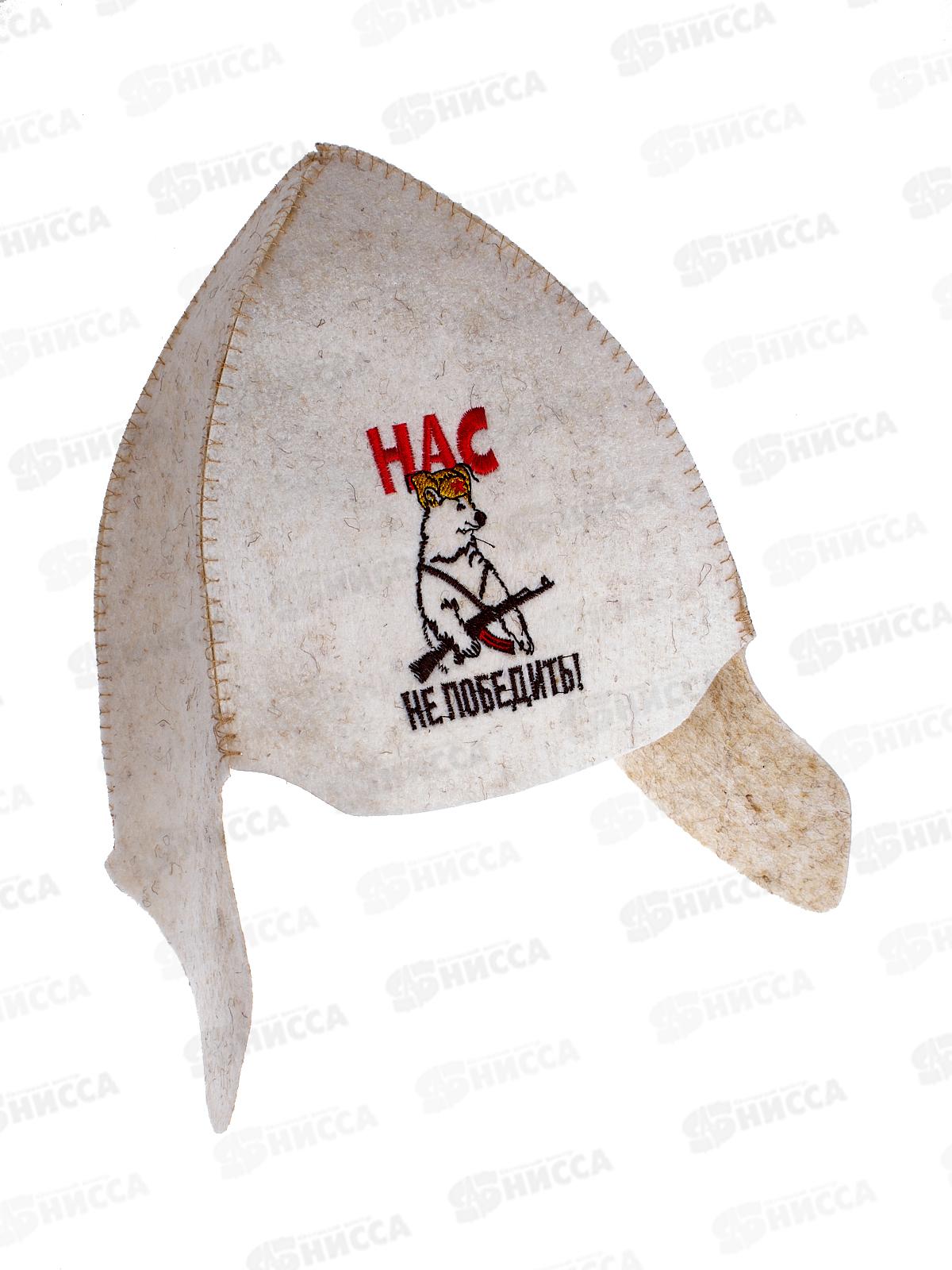 Шапочка для бани и сауны "Нас не победить!", из полушерсти. Эта шапочка станет вашим надежным спутником во время расслабляющих процедур, обеспечивая защиту от перегрева и сохраняя тепло, позволяя вам наслаждаться баней с комфортом.