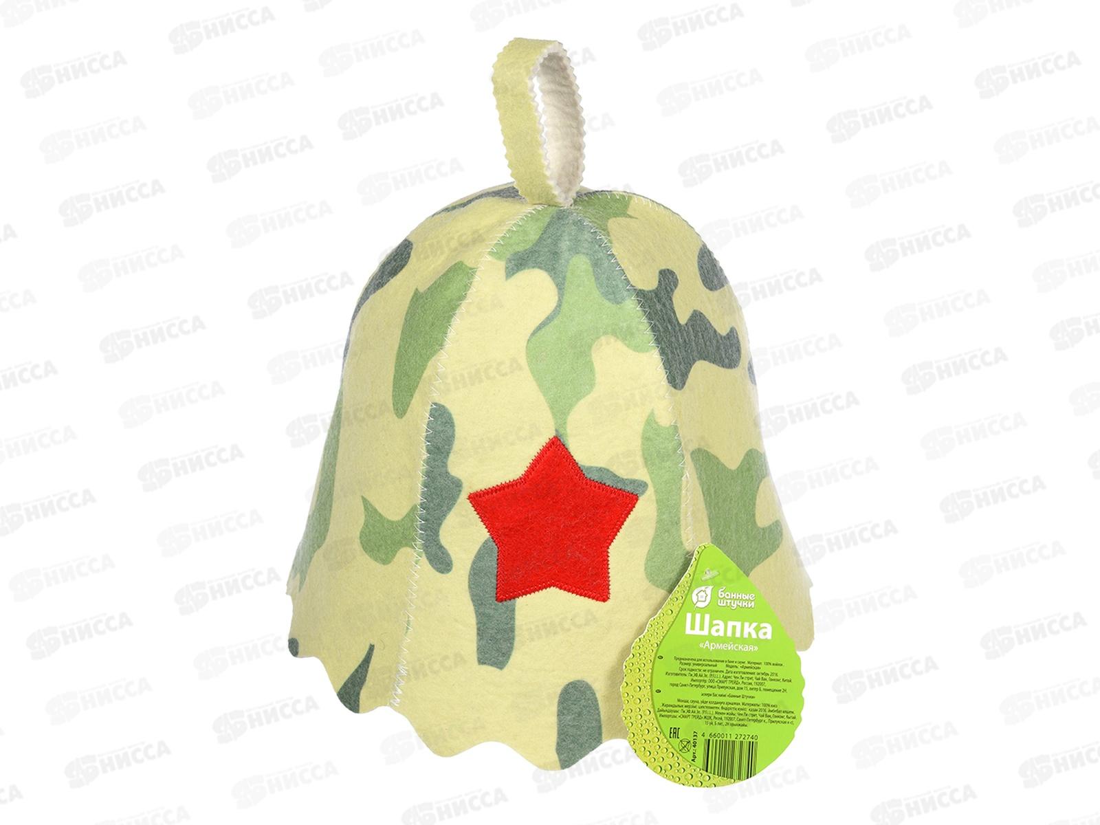 Шапка Банные штучки Армейская, войлок 100% 40137 - необходимый аксессуар при посещении бани и сауны. Оснащена петлей для подвешивания на крючок. Изготовлена из натурального войлока, который является антибактериальным материалом.