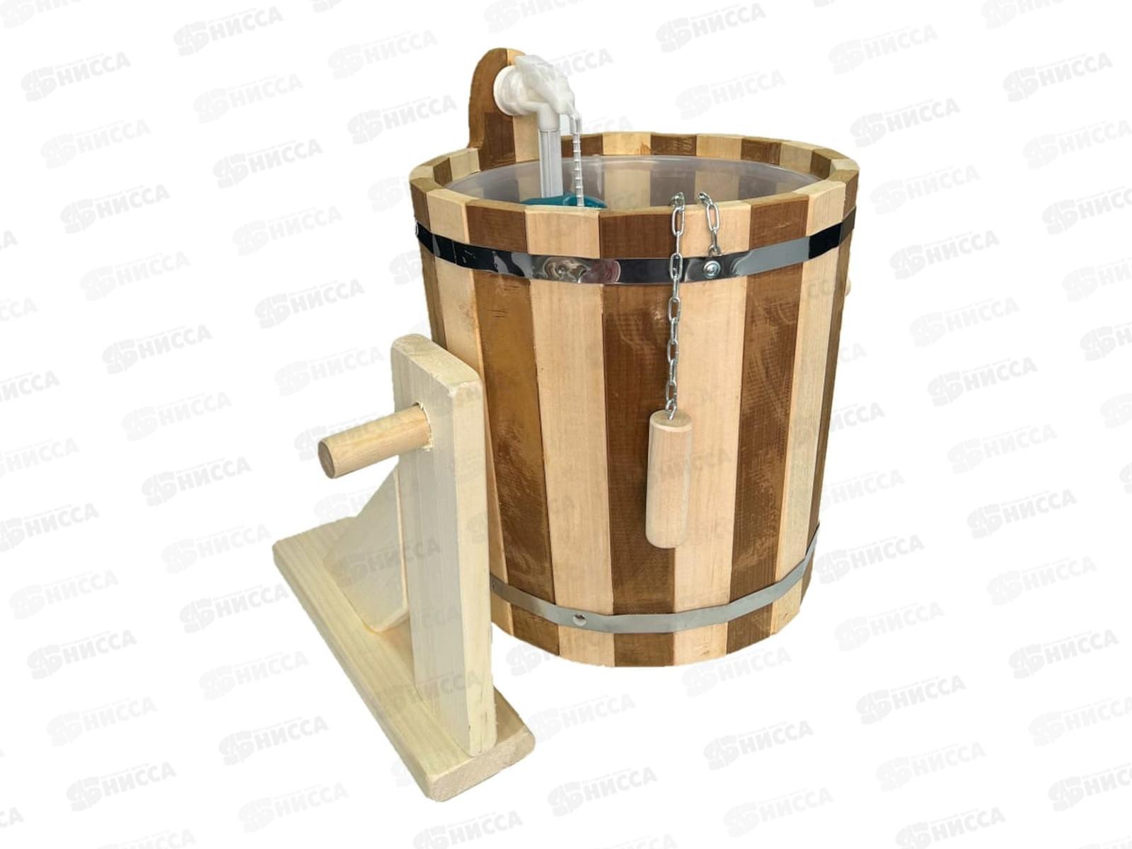 Обливное устройство Бацькина Баня липа, с переливом и пластиковой вставкой, 14 л - приспособление для обливания тела холодной водой после выхода из парной. Процедура стимулирует иммунитет, повышает настроение и тонизирует кожу. Представляет собой опрокидывающую конструкцию, состоящую из ведра, веревки для его переворачивания и поплавка, необходимого для регулировки уровня воды в нем.