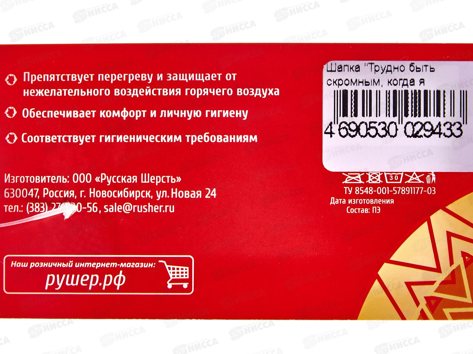 Шапка "Трудно быть скромным, когда я лучший", экофетр, 20822