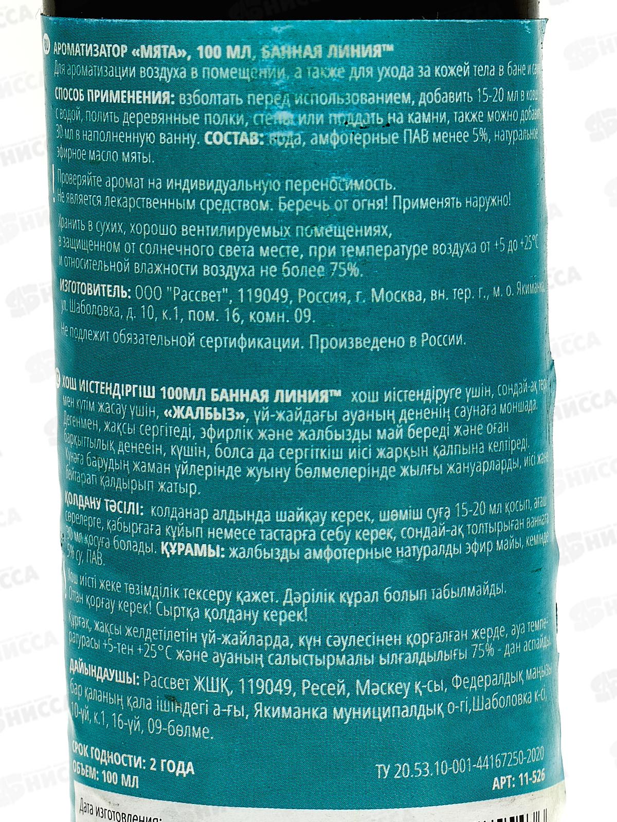 Ароматизатор 100мл "Мята" Банная линия 11-526 *20