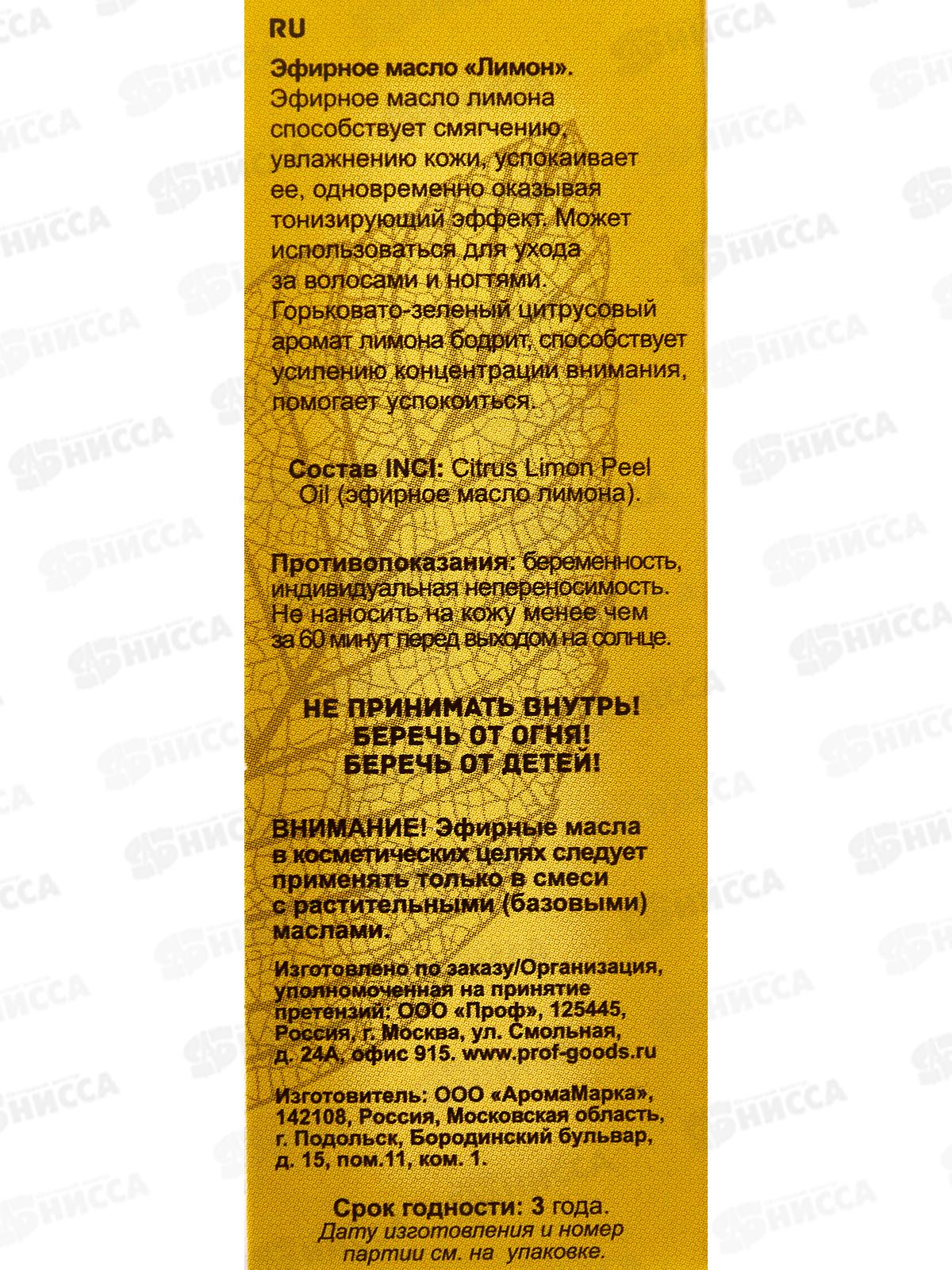 Эфирное масло "Лимон" Бацькина баня"17052*28