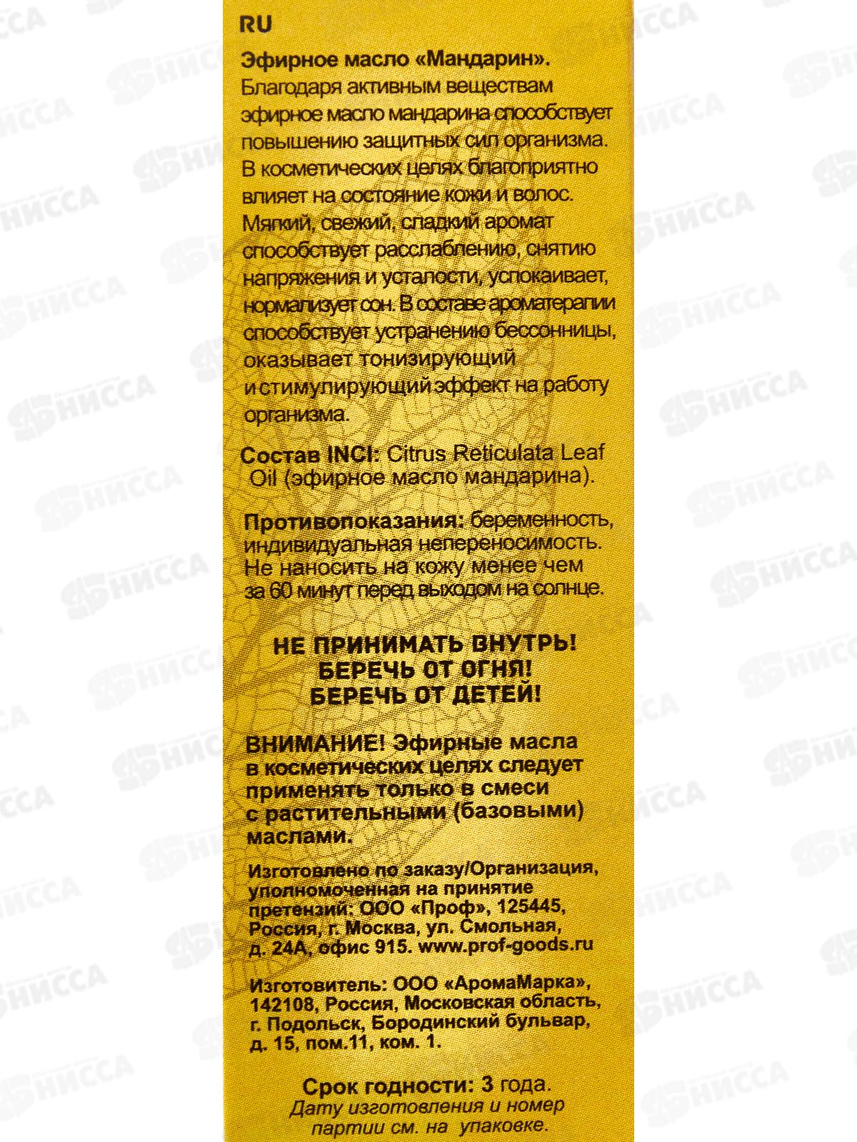 Эфирное масло "Мандарин" Бацькина баня"17053*28
