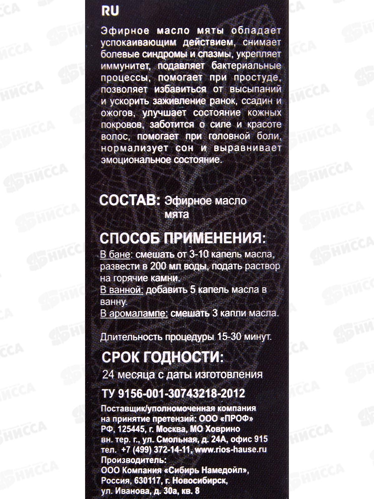 Эфирное масло "Мята" Бацькина баня"16008*28