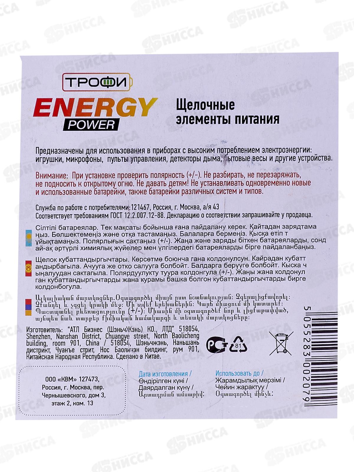 Батарейка ТРОФИ LR6 ENERGY POWER Alkaline, 4BL *4/40/640