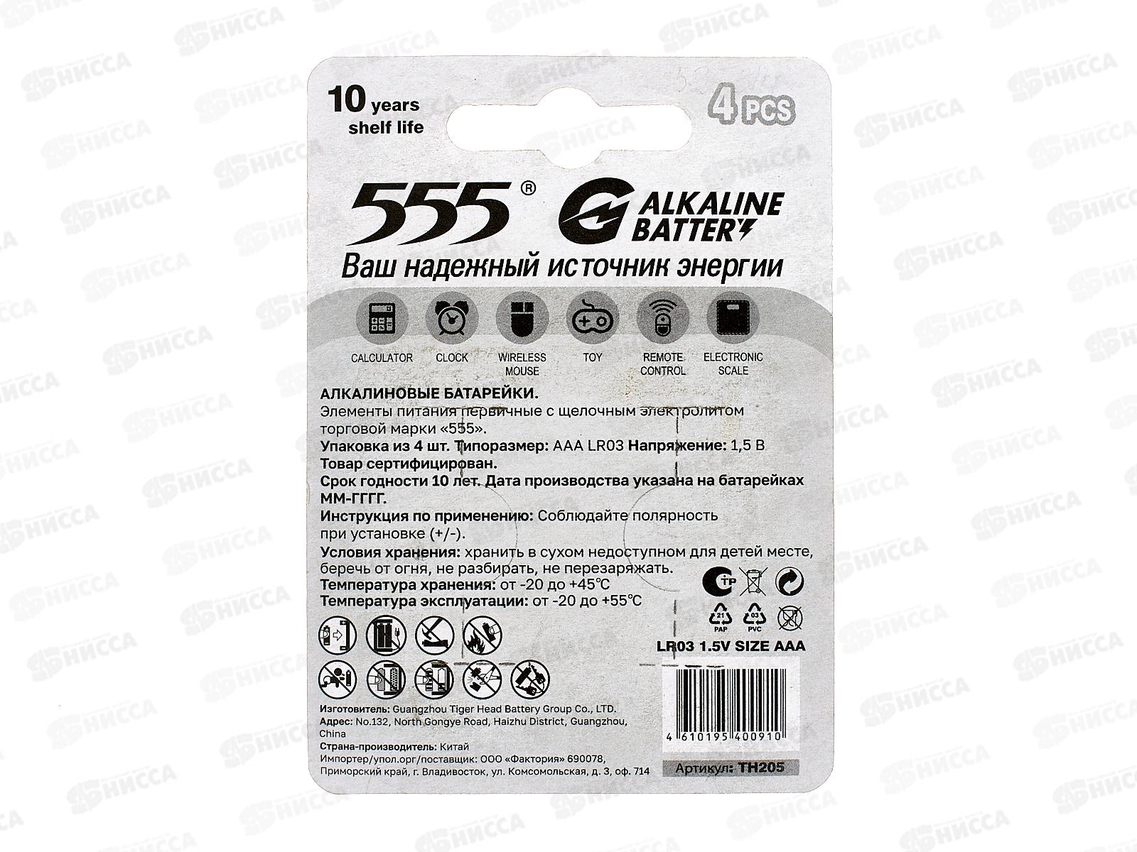 Батарейки 555 AAA LR3 4шт алкалиновые *12/72
