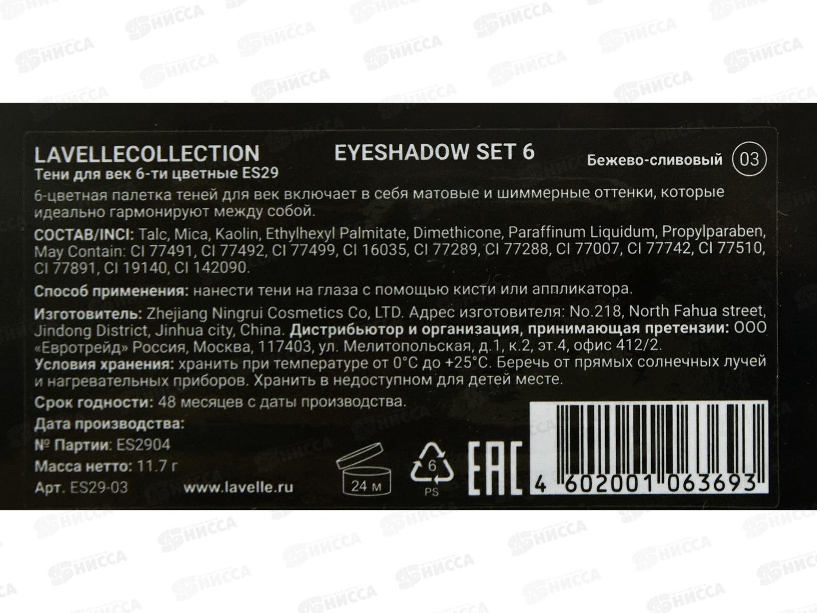 Lavelle Тени для век 6-ти цветные ES29 тон 03 бежево-сливовый *6