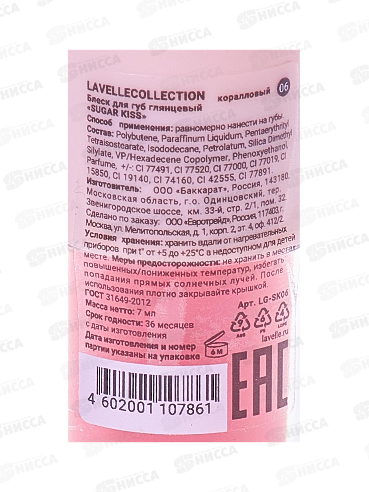 Lavelle Блеск для губ глянцевый Sugar Kiss 06 коралловый