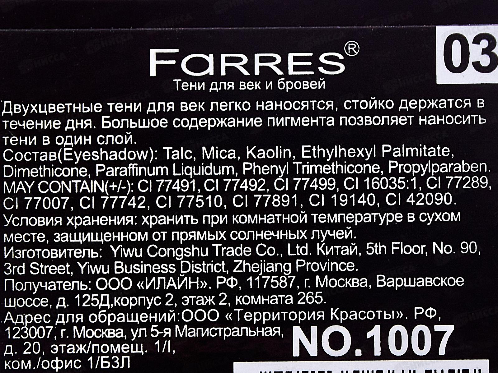 Farres Тени для век Shade 1007-03 бежевый/молочный 2 цвета *6
