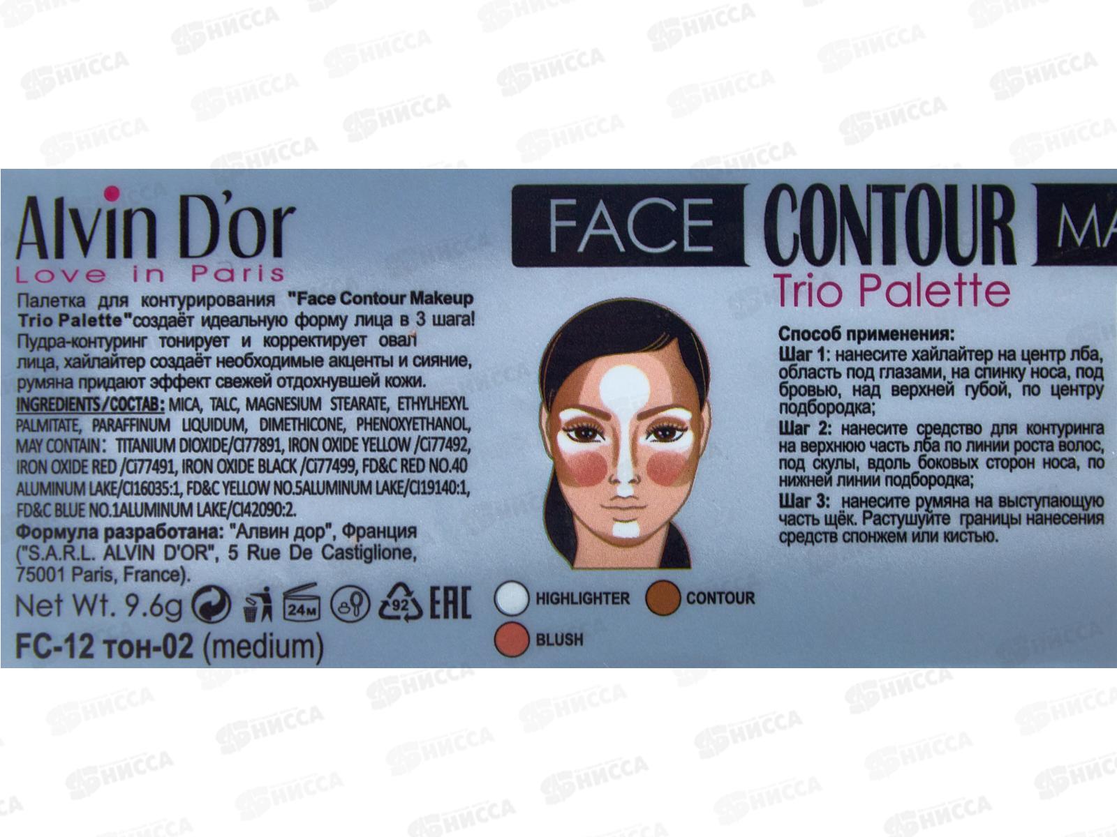 Алвин Дор Палетка FC-12 3х1(контуринг+хайлайтер+румяна) №2