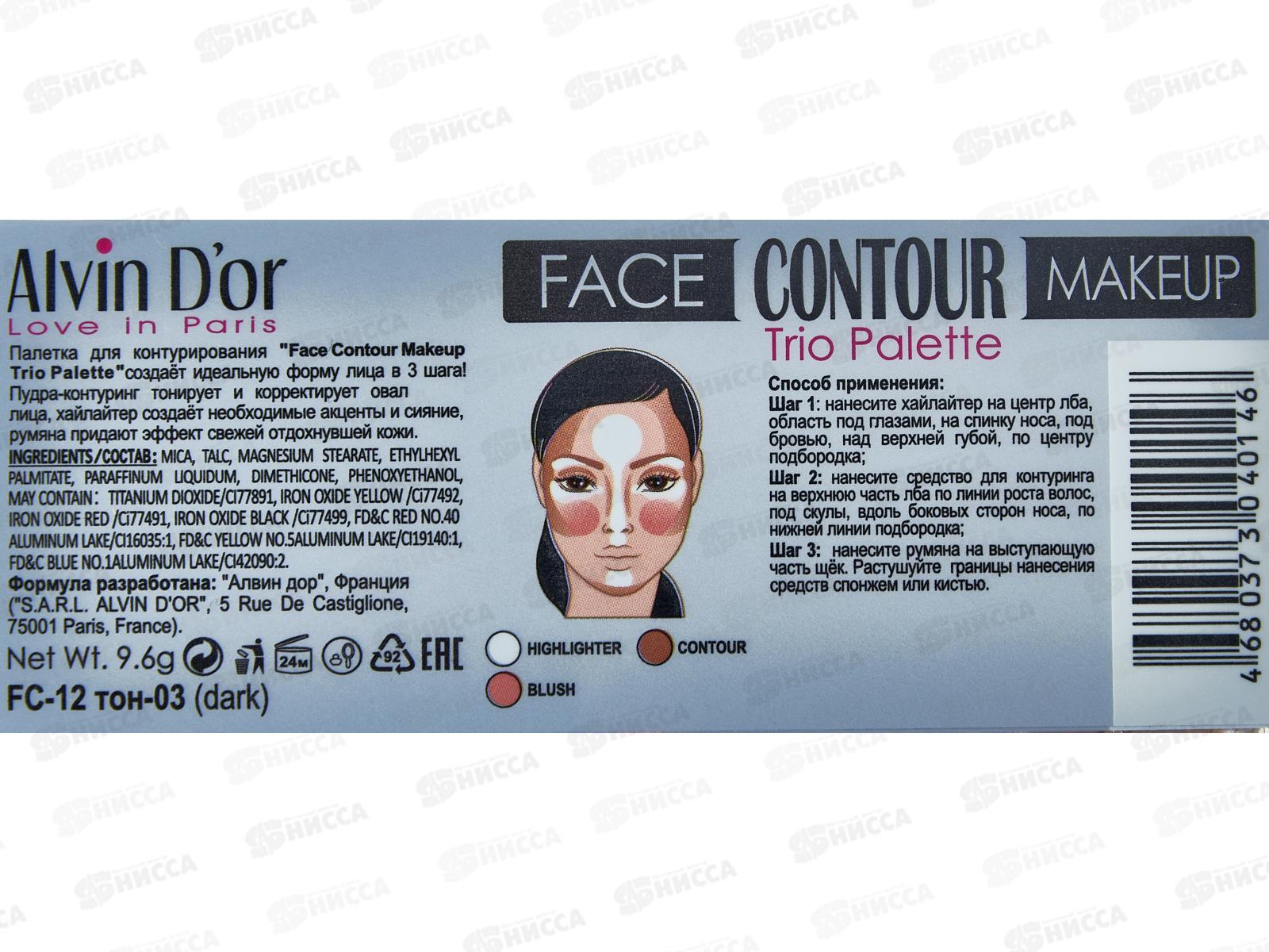 Алвин Дор Палетка FC-12 3х1(контуринг+хайлайтер+румяна) №3