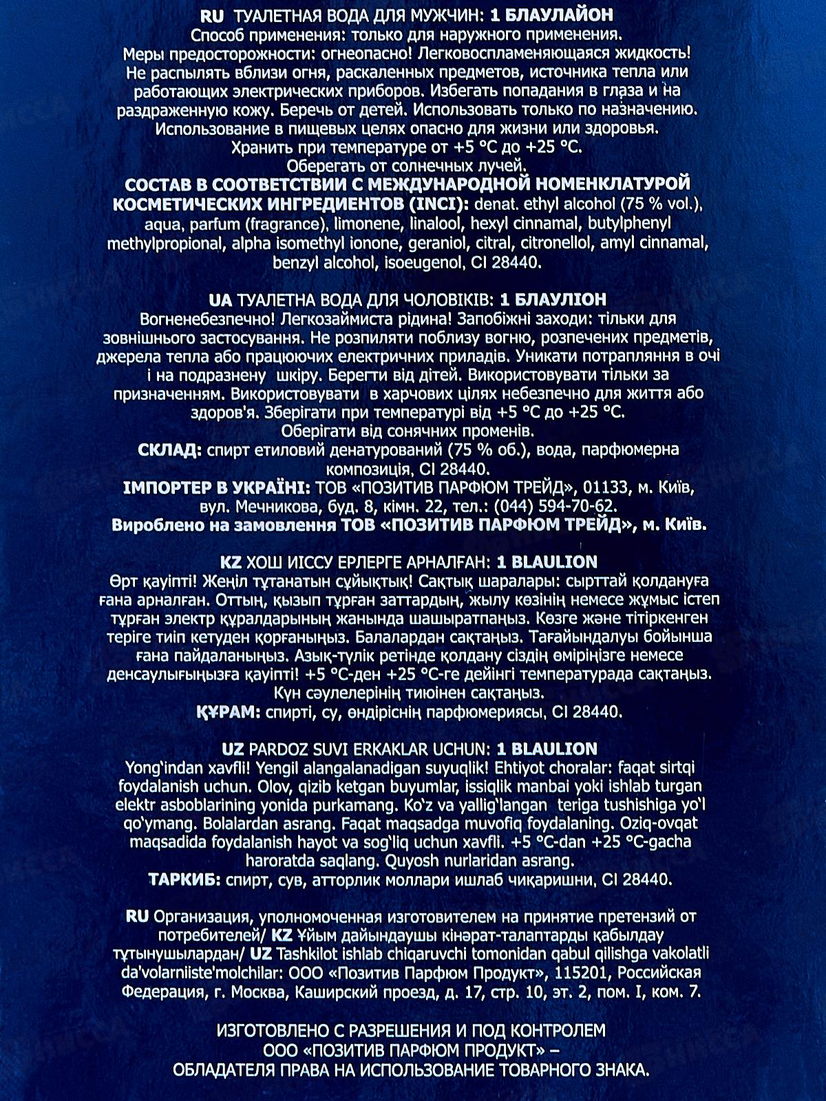 AAM 100мл 1 Blaulion, туалетная вода мужская*18 М