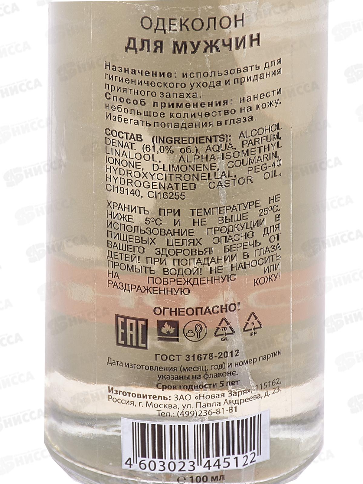 Новая Заря Для мужчин, одеколон 100мл БЕЗ ФУТЛЯРА *16 М