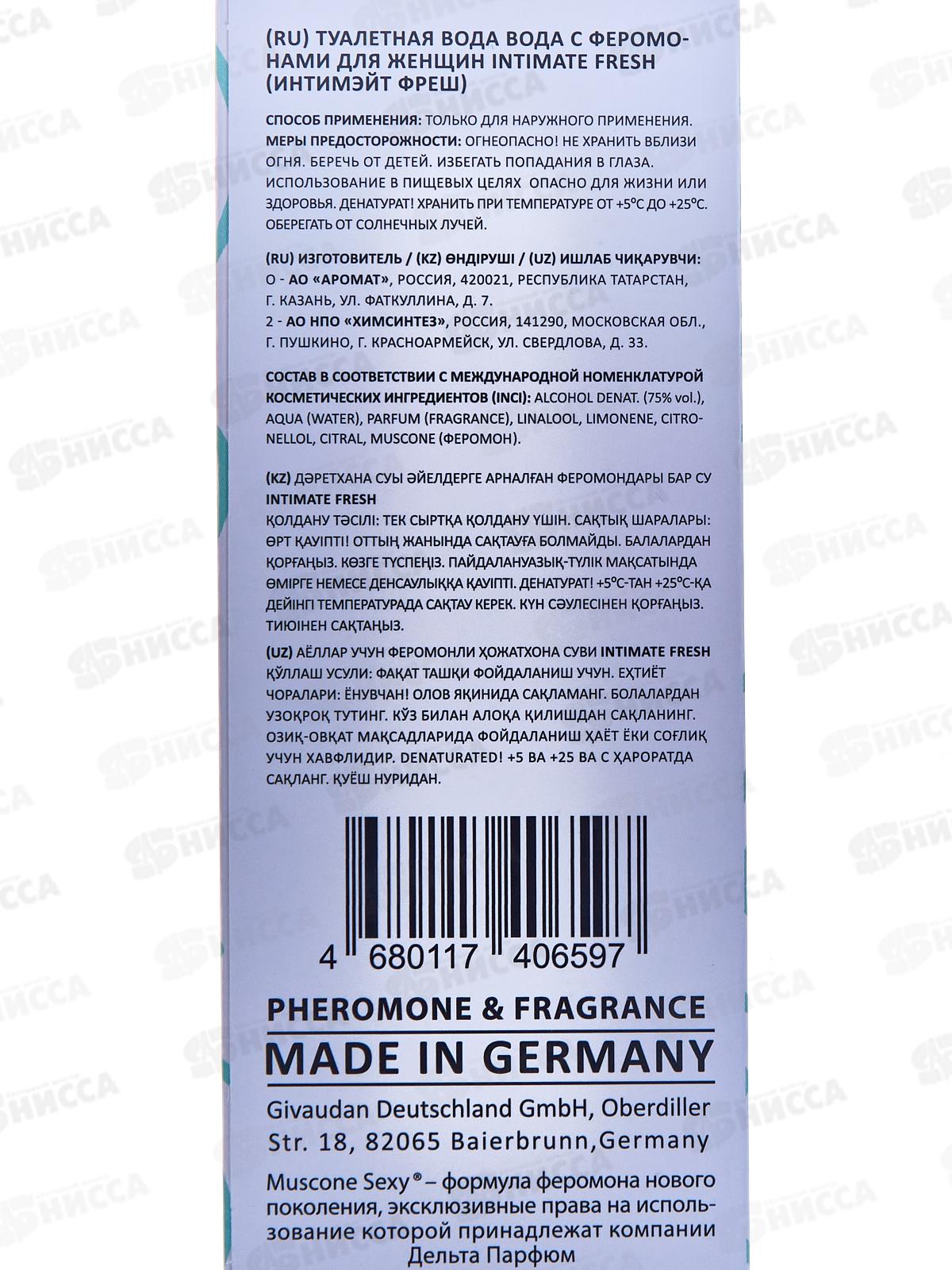 In. Intimate Fresh, туалетная вода с феромонами 30мл женская М