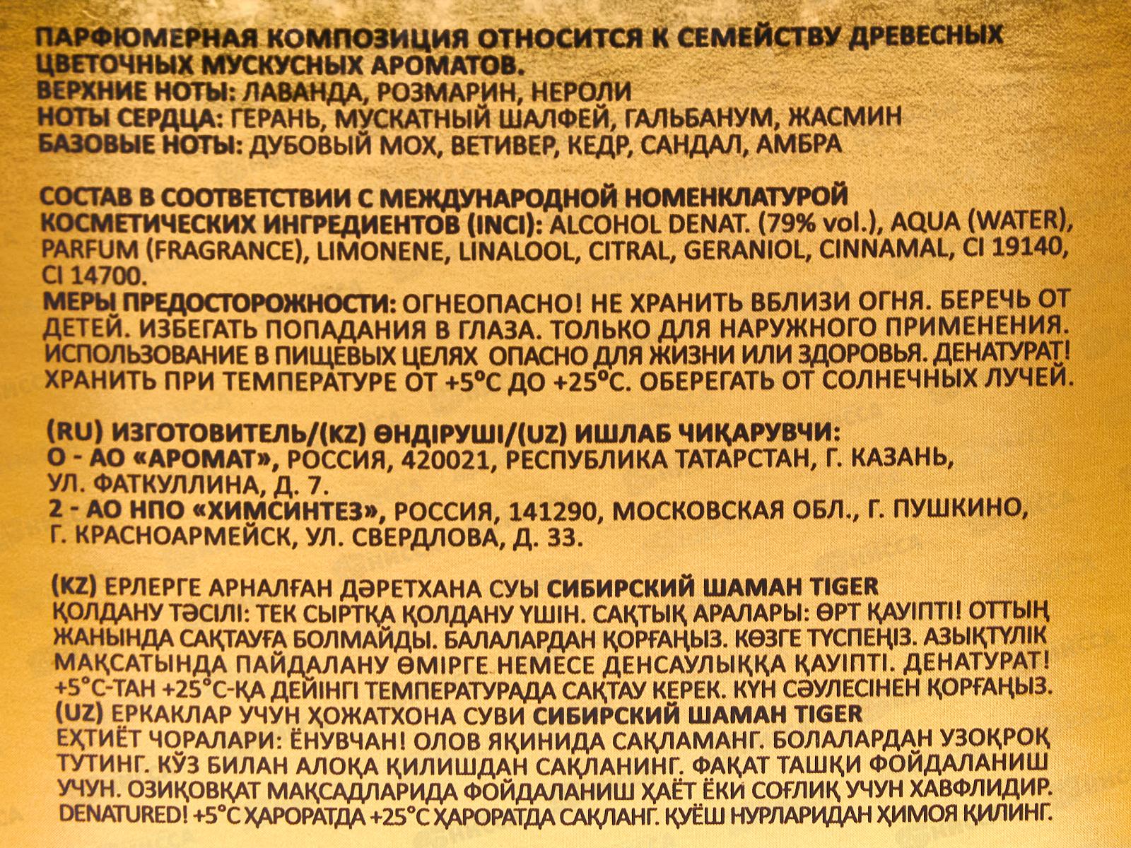 Сибирский Шаман Tiger туалетная вода 100мл мужская М
