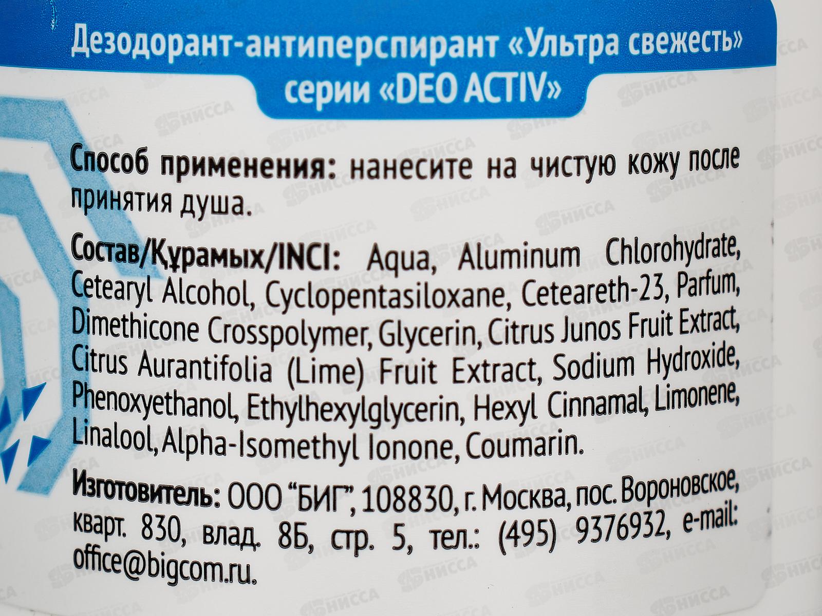 Состав: Вода, хлоргидрат алюминия, цетеариловый спирт, циклопентасилоксан, цетеарет-23, отдушка, кроссполимер диметикона, глицерин, экстракт плодов юдзу (Citrus Junos), экстракт плодов лайма (Citrus Aurantifolia), гидроксид натрия, феноксиэтанол, этилгексилглицерин, гексилциннамаль, лимонен, линалоол, альфа-изометилионон, кумарин.