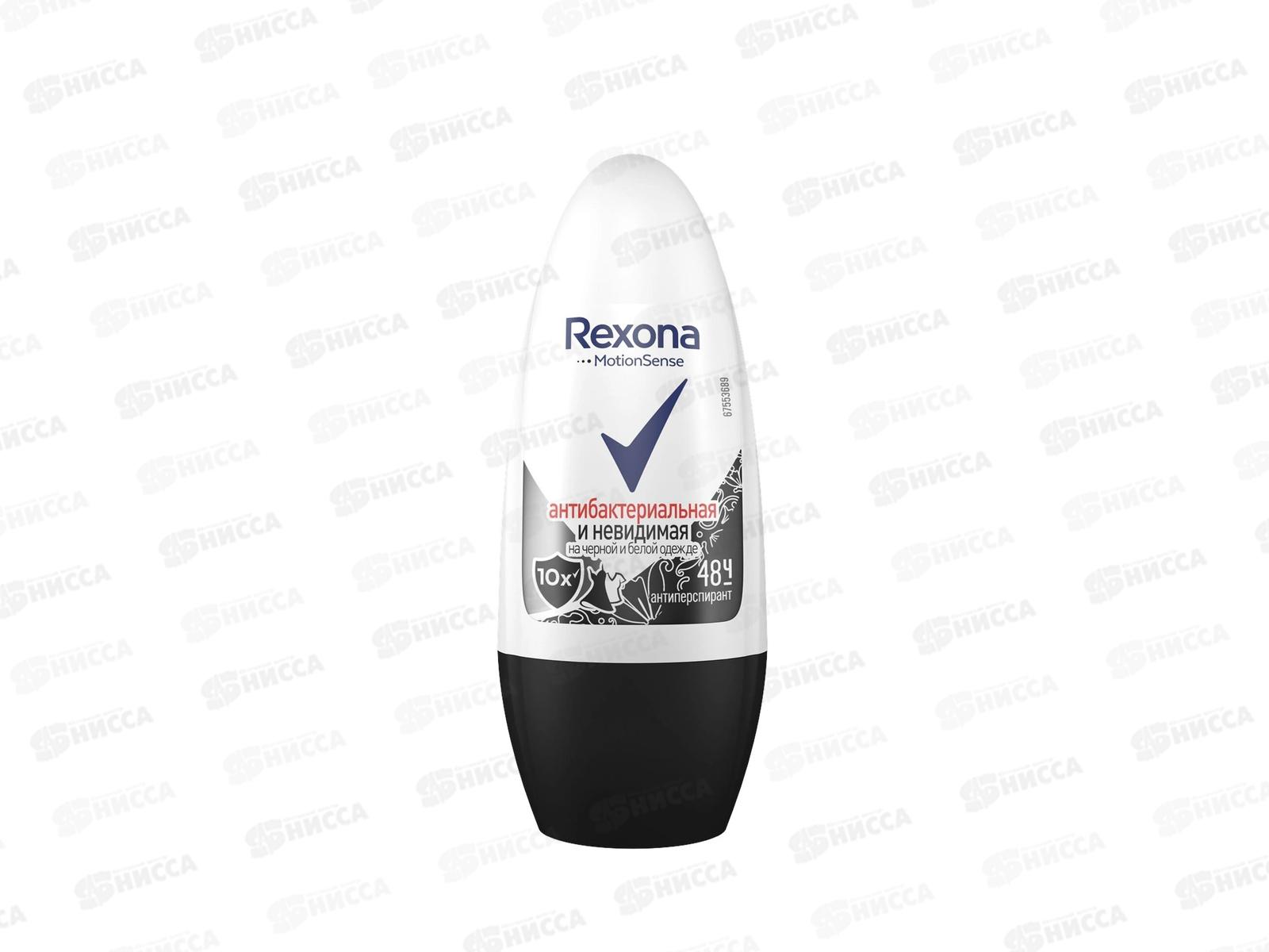 РЕКСОНА дезодорант шариковый 50мл Антибактериальный невидимый на черном и белом*6/24