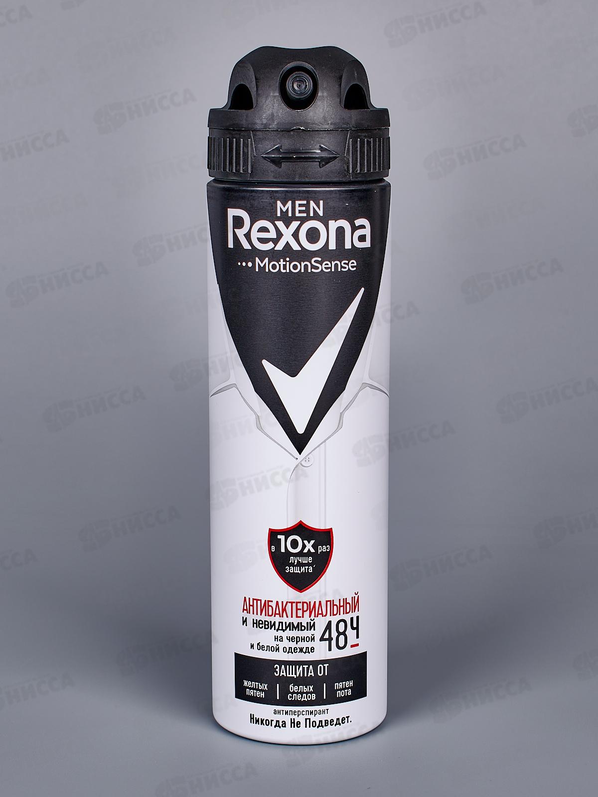 Дезодорант-антиперспирант Rexona Men «Антибактериальный и невидимый на чёрной и белой одежде» бережно относится к нежной коже подмышек, противостоит поту, запаху, белым следам на чёрном и жёлтым пятнам на белом. В его формуле достигнут оптимальный баланс: концентрация активного компонента делает средство невидимым на коже и одежде, но при этом эффективным против бактерий, вызывающих неприятный запах. Дезодорант-антиперспирант создан с использованием инновационной технологии Motionsense. Шипучая смесь хрустящих, чистых и ярких фруктовых нот открывает аромат. Многогранный воздушный жасмин с успокаивающим шлейфом привносит чистый заряд энергии. Мощная платформа из нот пачули и бобов тонка передаёт изысканный мужской характер. Парфюмерная композиция в составе антиперспиранта имеет не только высокую дезодорирующую эффективность, но и обладает антибактериальными свойствами. Покоряете ли вы новую вершину, спешите ли на автобус, выступаете с докладом или идёте на свидание — вы надёжно защищены от пота и запаха. Защита против бактерий в 10 раз лучше по результатам микробиологического in-vivo теста. Число бактерий сокращается в 10 раз через 24 часа после нанесения по сравнению с использованием только неантибактериального геля для душа без использования антиперспиранта