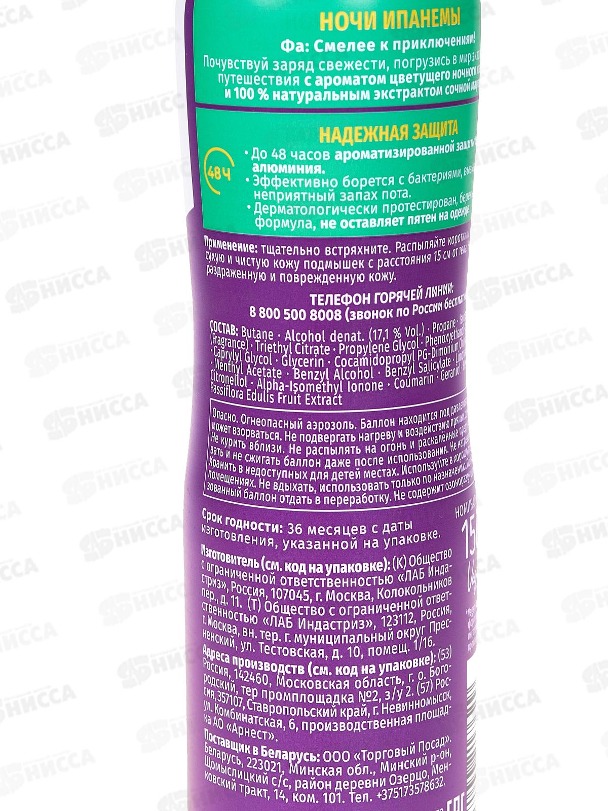 ФА дезодорант спрей Ночи Ипанемы 150мл *12