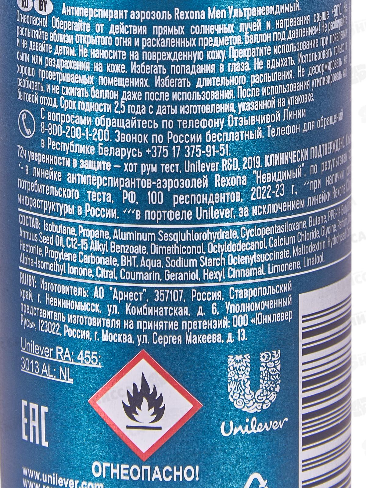 Включите Rexona Men Ультраневидимый в свой ежедневный ритуал свежести и ощущайте уверенность до 72 часов. Он быстро высыхает и гарантирует длительную защиту от пота и запаха благодаря усиленной формуле для непревзойденной защиты от пота и запаха на 72 часа! Новая революционная технология Motionsense активируется при движении, сохраняя свежесть и абсолютный комфорт на весь день. Микрочастицы создают дышащую микропленку для надежной защиты от пота и запаха. Потовые железы блокируются частично, кожа при этом дышит. Больше движений – больше уверенности! Не требует повторного нанесения в течение дня.