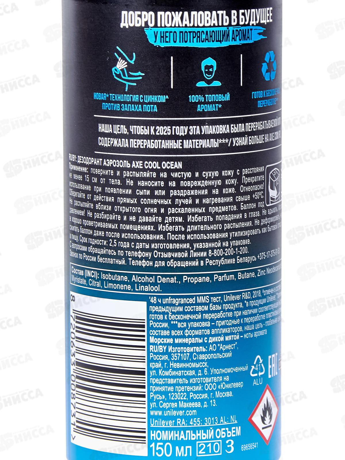 В основе формулы – антибактериальная технология на основе цинка – твоя усиленная защита от неприятного запаха до 48 часов. Она препятствует появлению неприятного запаха, при этом не содержит солей алюминия и позволяет коже дышать. Забудь про следы на одежде и неприятный запах. Только ощущение свежести, и крутой современный аромат, который привлечет к тебе еще больше нужного внимания. Каждый аромат AXE – это парфюмерный шедевр, созданный при участии лучших парфюмерных домов мира. Упаковка в актуальном дизайне займет достойное место на твоей полке.