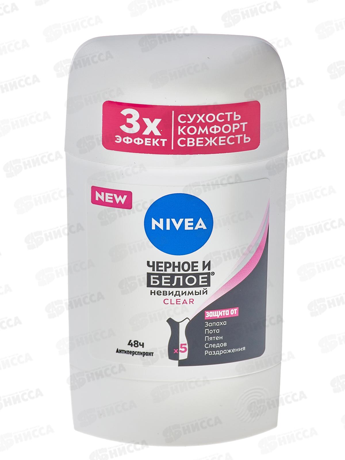 НИВЕЯ дезодорант стик женский Черное и Белое Невидимый Clear 50мл *15/5 84153