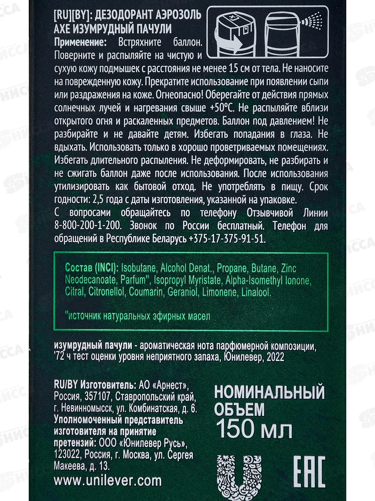 АКС Дезодорант Изумрудный пачули спрей 150мл *6
