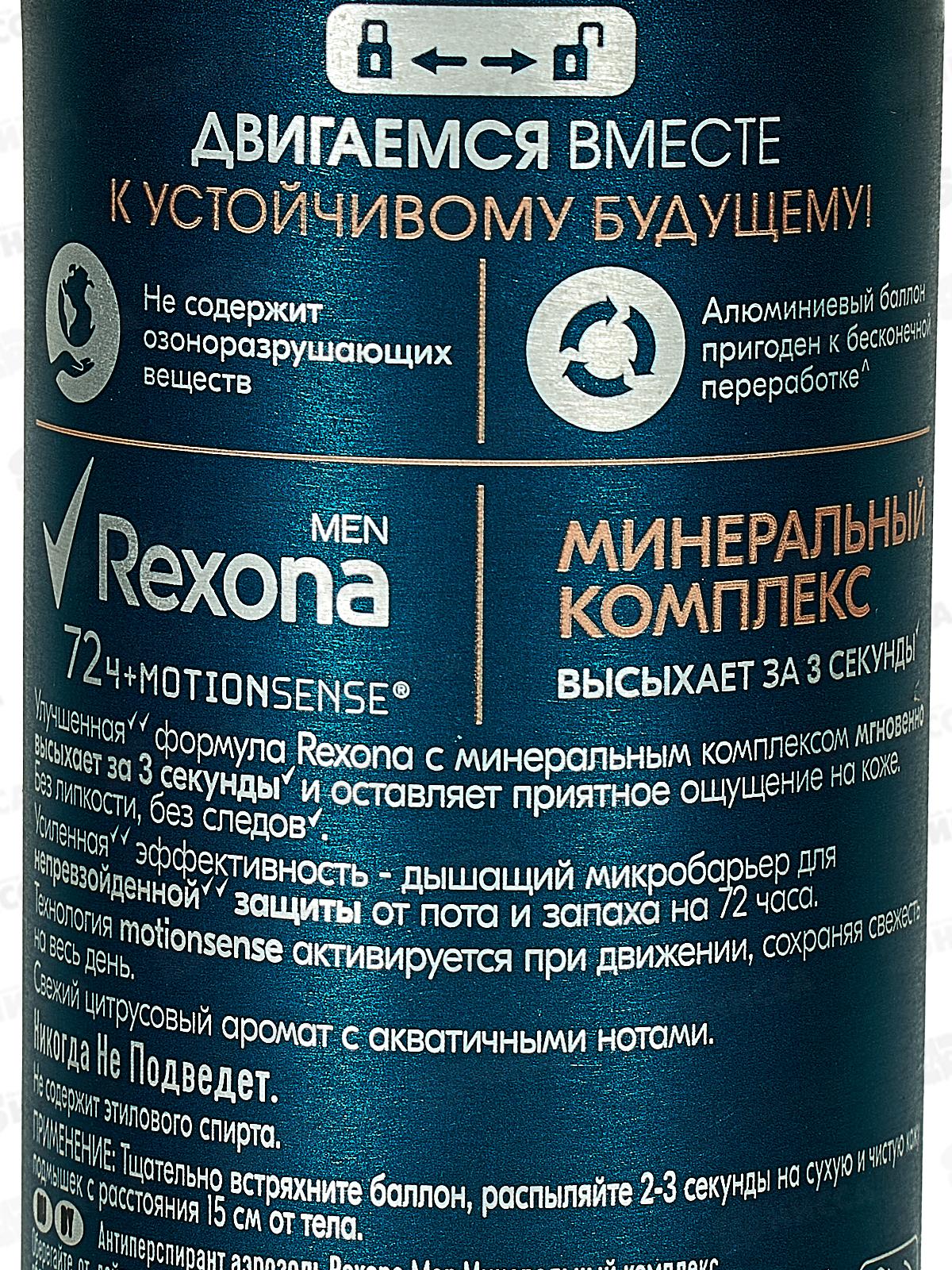 Дезодорант антиперспирант Rexona Men создан с учётом повышенной эффективности: он образует дышащий микробарьер, обеспечивая надёжную защиту мужчины от пота и неприятного запаха на 72 часа. Технология Motionsense активируется при движении, поддерживая свежесть на протяжении всего дня. Цитрусовый аромат дезодоранта для мужчин с акватическими нотками мягко ложится на кожу, не перекрывая аромат вашего парфюма. Ощущайте уверенность и свежесть в любой ситуации вместе с мужским дезодорантом рексана : во время пробежки, на работе или в спортзале.