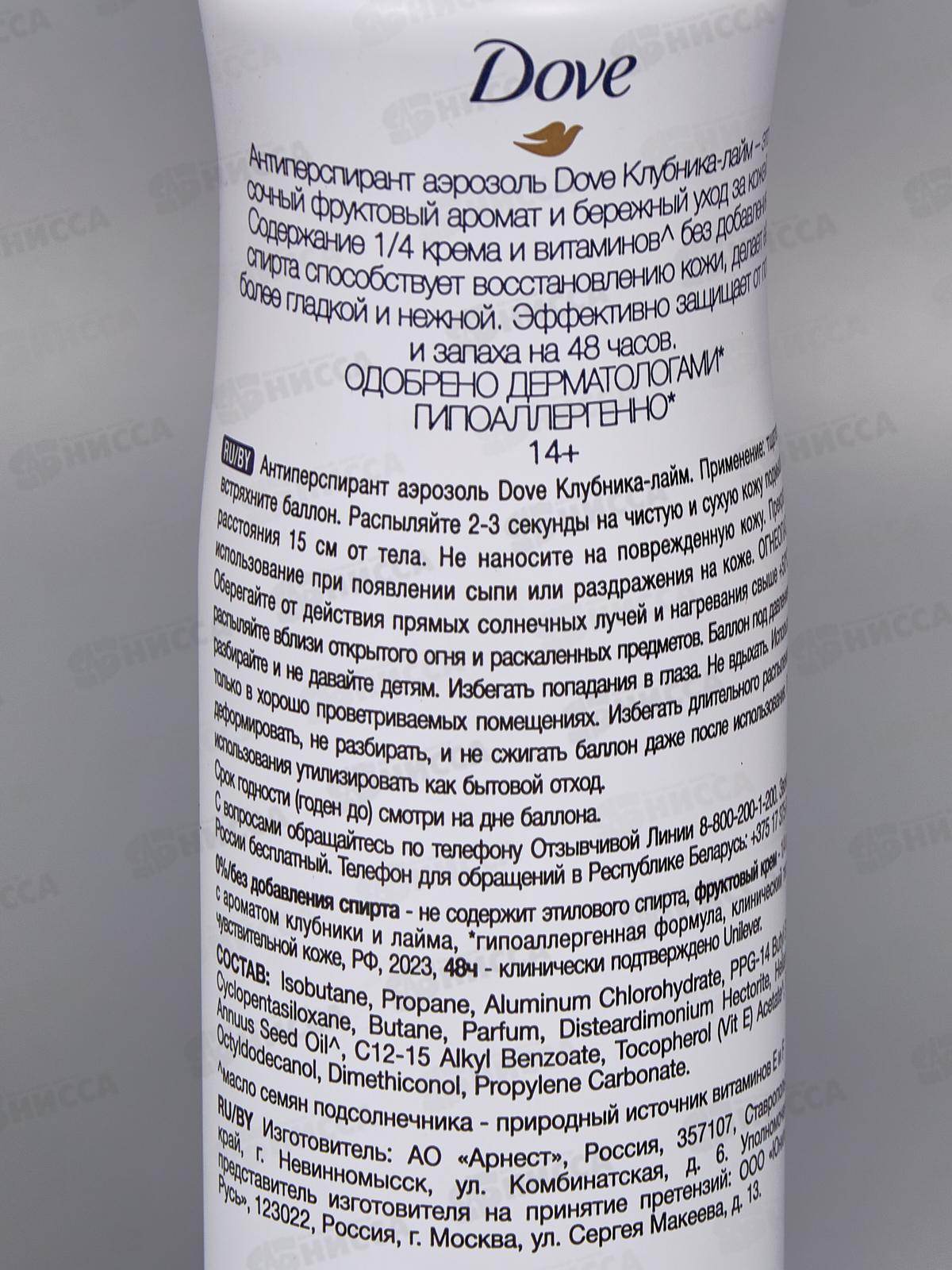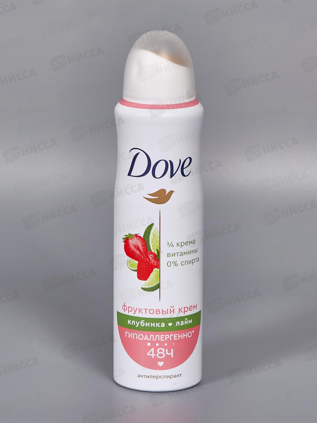 Дезодорант-антиперспирант в форме спрея Dove Фруктовый крем подходит для надежной защиты от пота и запаха. Средство эффективно защищает от пота и запаха на 48 часов. В составе 1/4 фруктового крема клубники и лайма и витамины. Антиперспирант ухаживает за кожей и способствует восстановлению, делает ее более гладкой и нежной