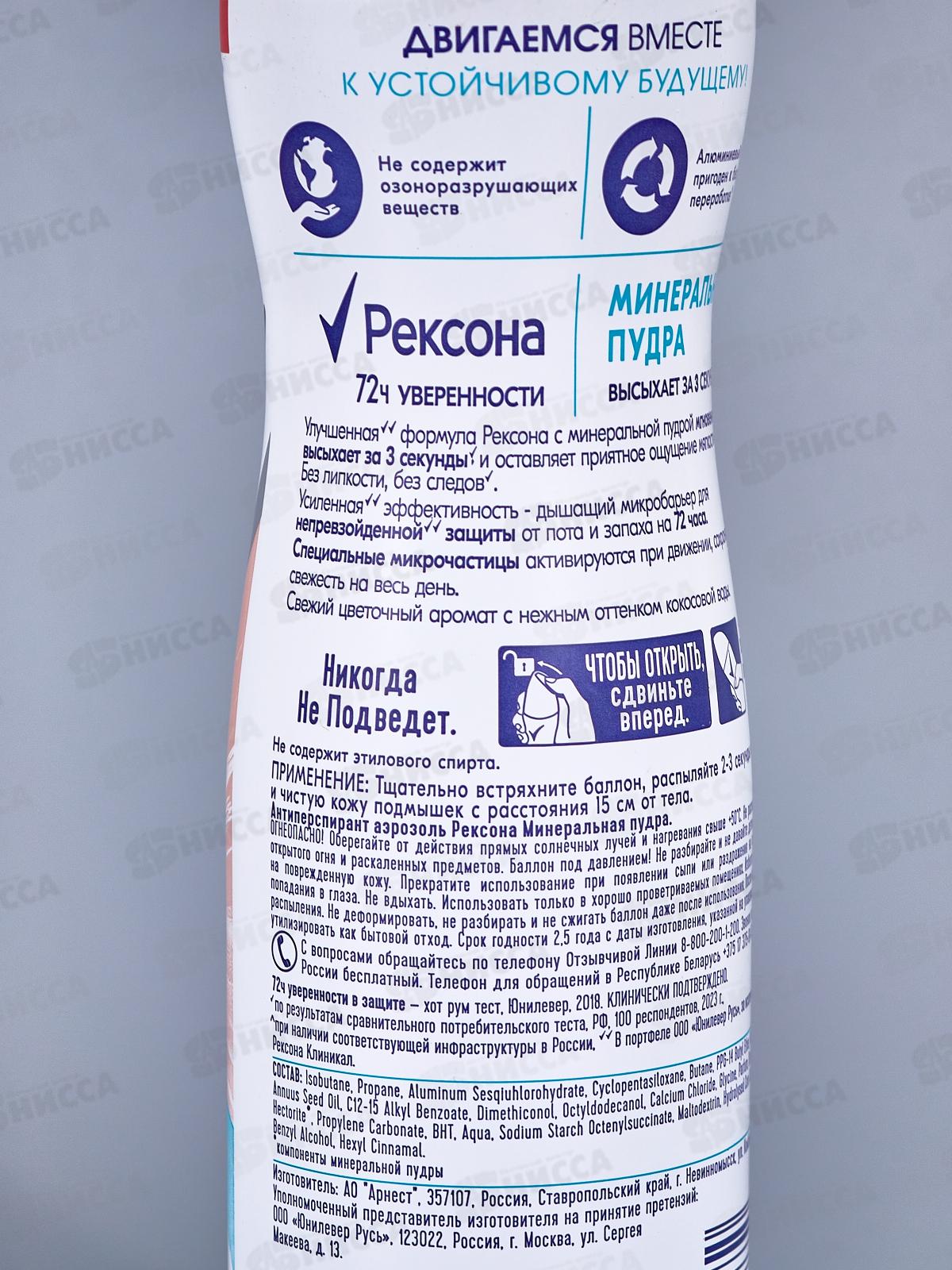 РЕКСОНА дезодорант спрей 150мл Минеральная пудра *6