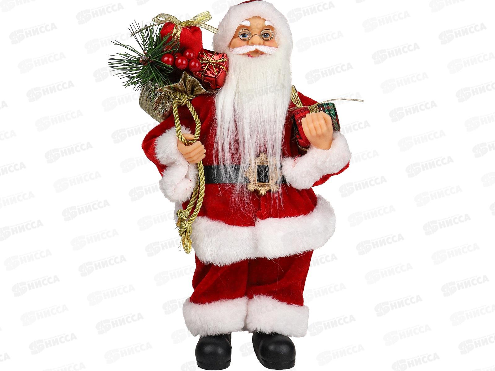 Дед Мороз 35см в красной шубе с белым мехом и подарками, НУ-6277
