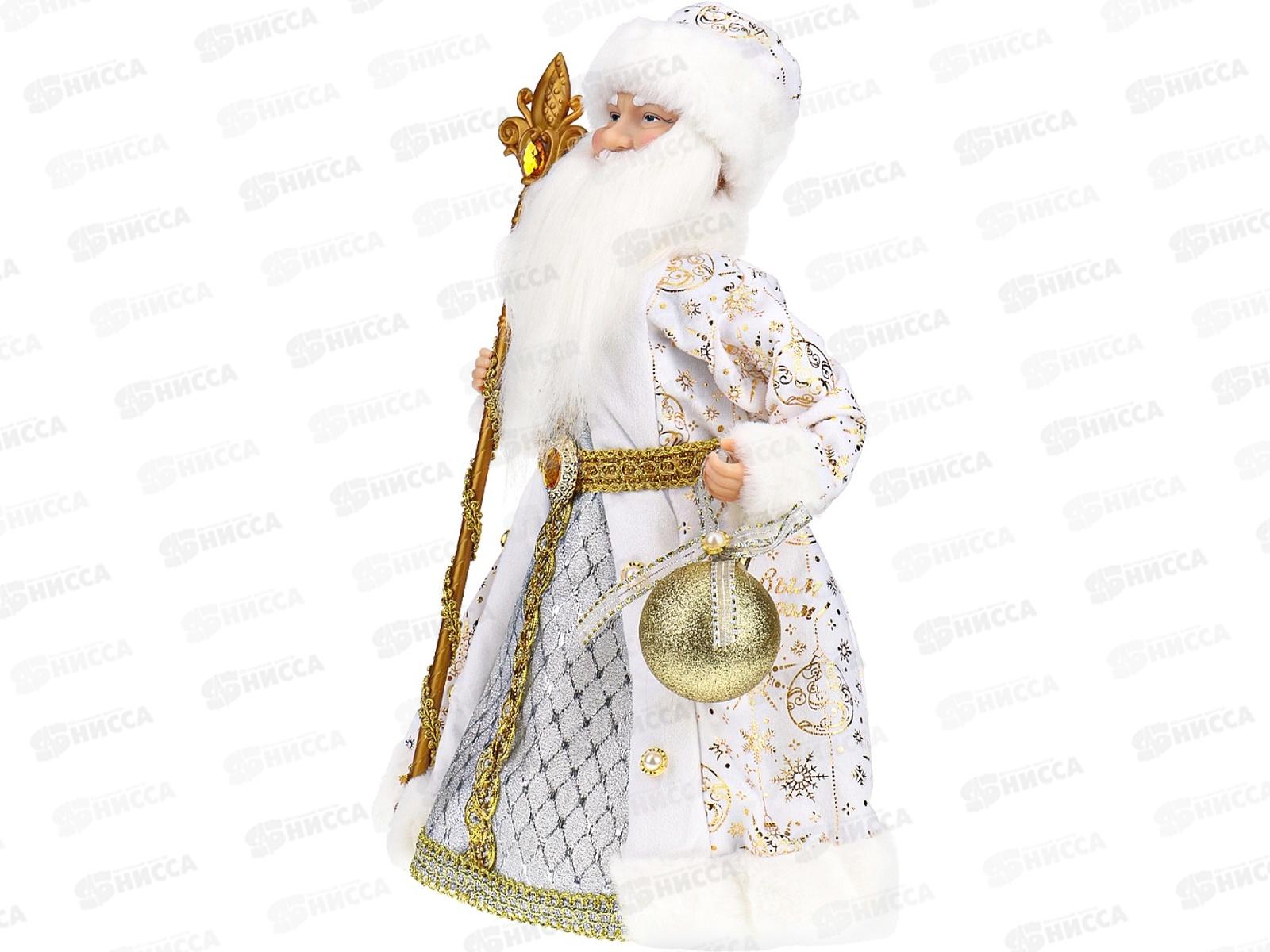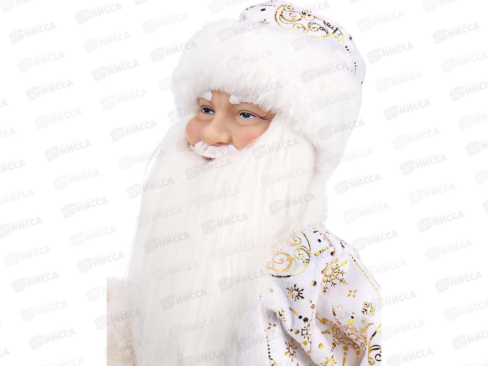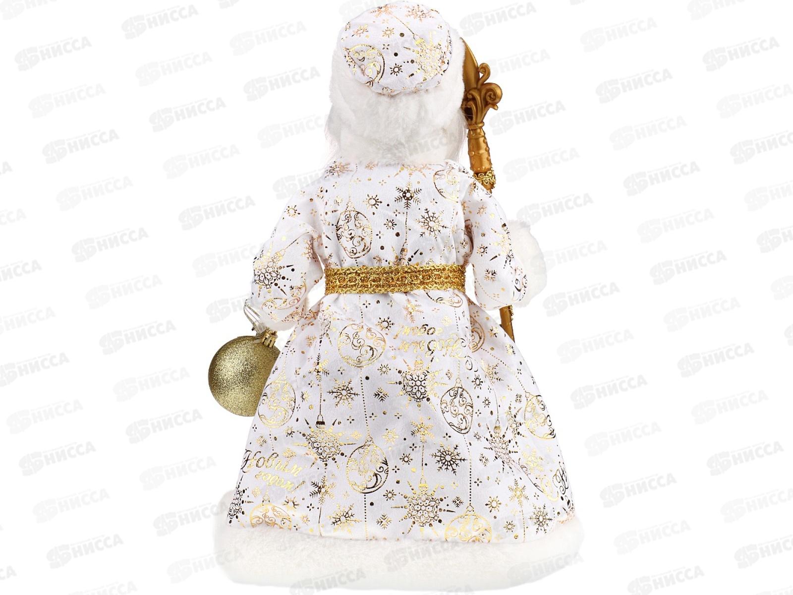 Дед Мороз в бело-золотой шубе, с мелодией, 40см Т-6015