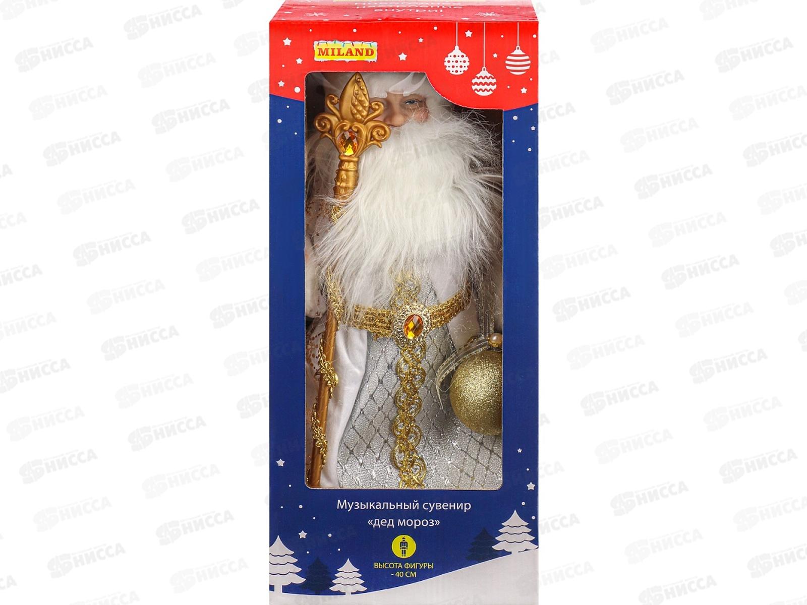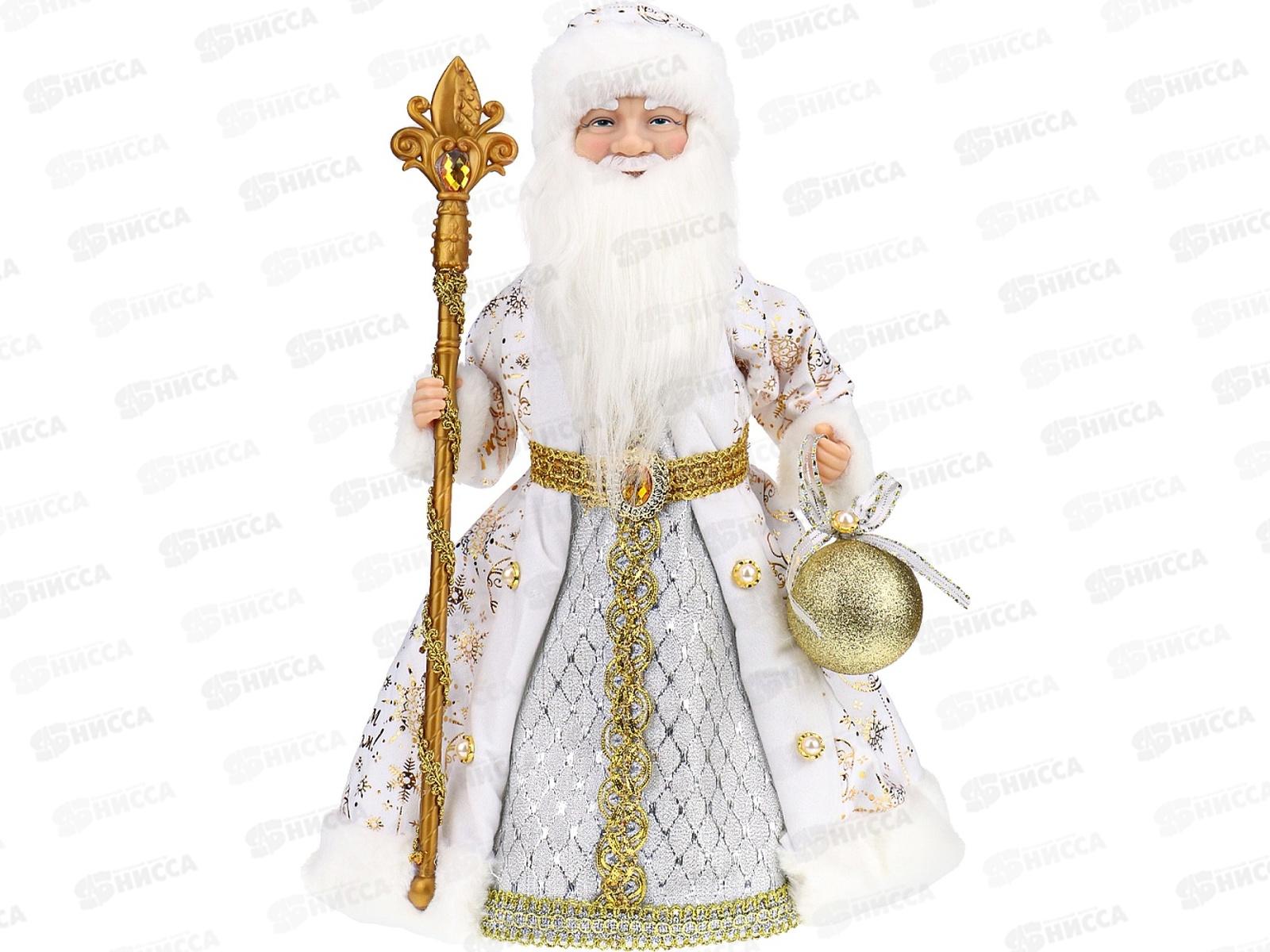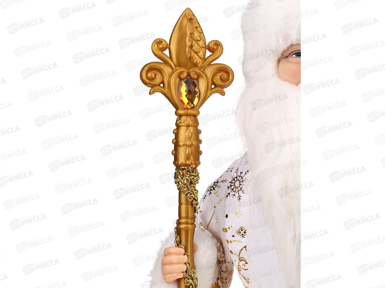 Дед Мороз в бело-золотой шубе, с мелодией, 40см Т-6015