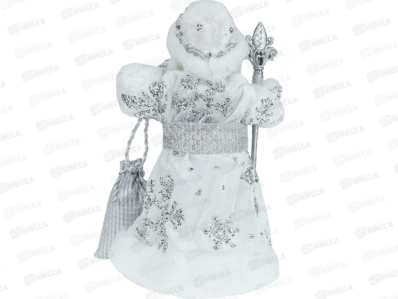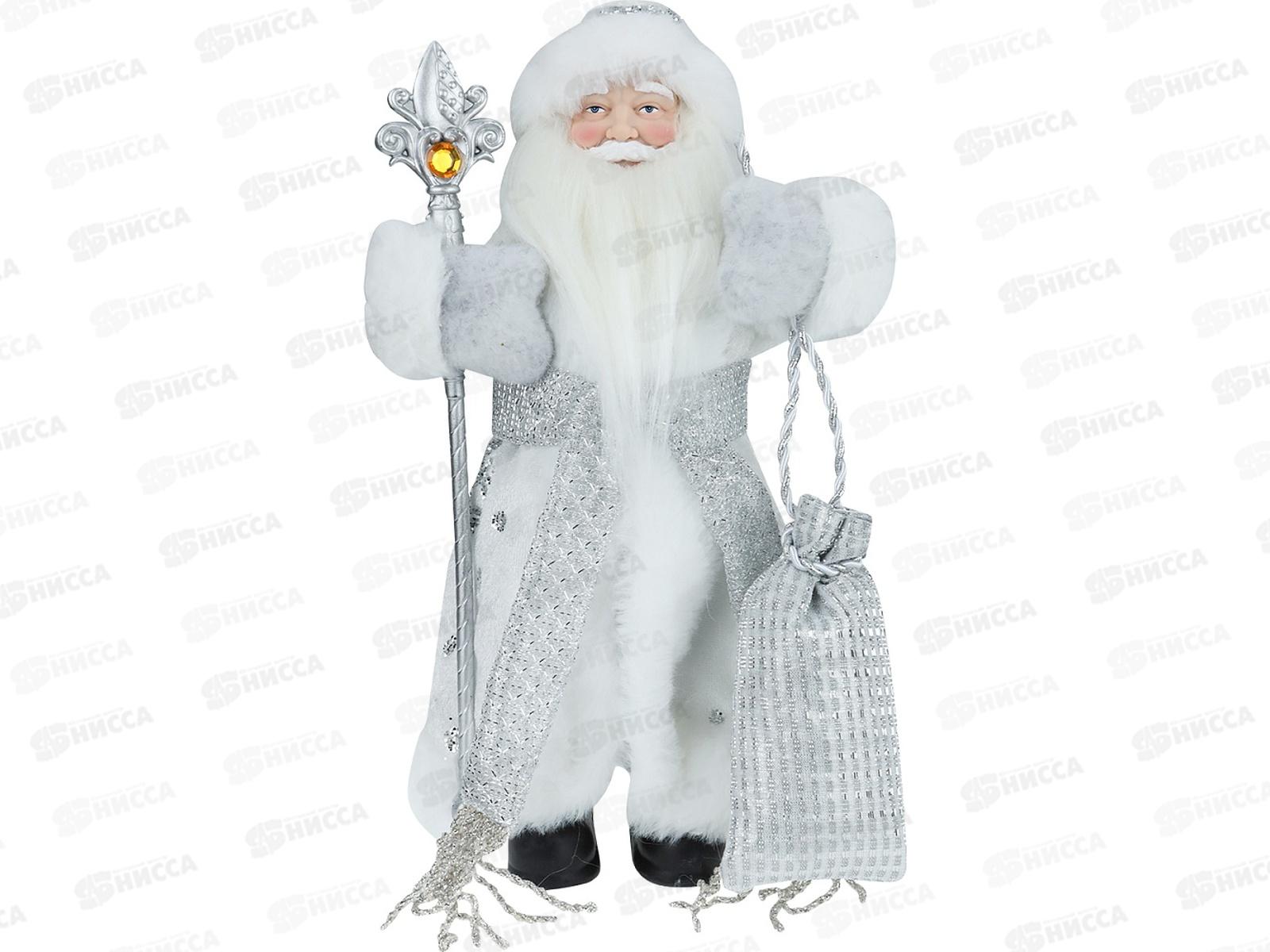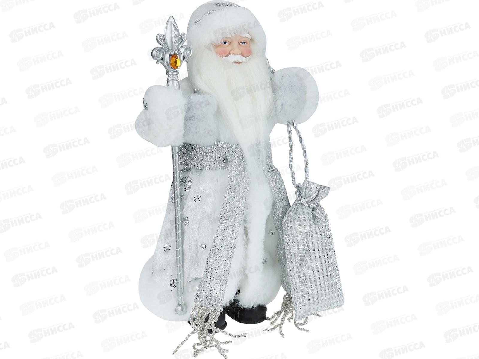 Дед Мороз в бело-серебристой шубе с посохом, 30см Т-6345