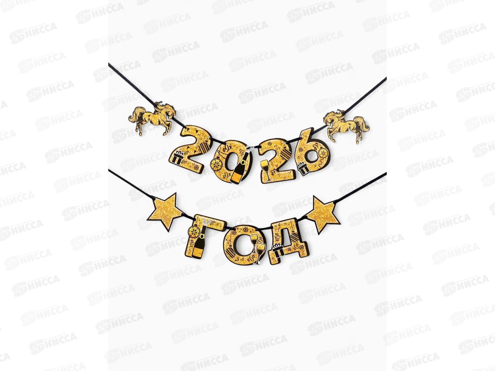 Гирлянда на ленте "2026 год",лошади,золотой 150см 10882791