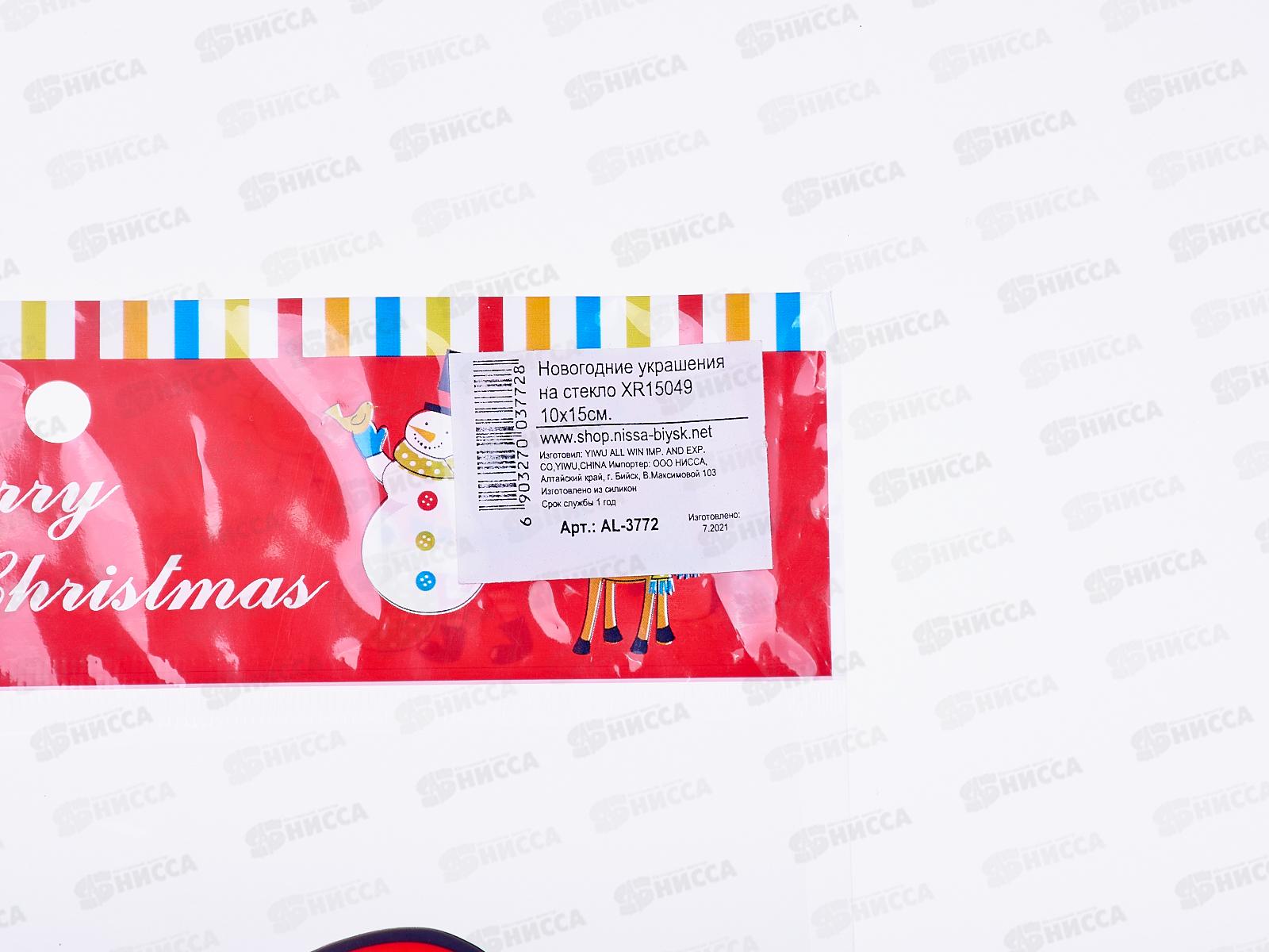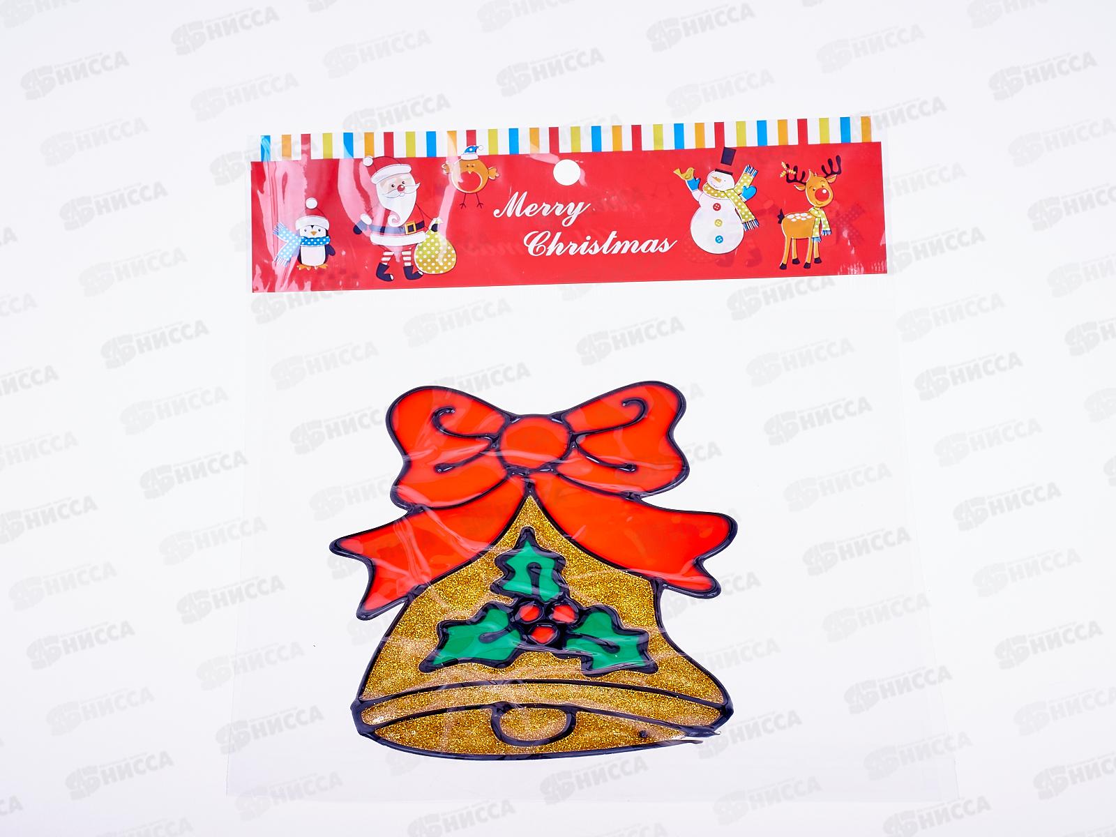 Наклейка на стекло 14.5x15.5 асс, AL-3772Дед Морозы, колокольчики, снеговик *600