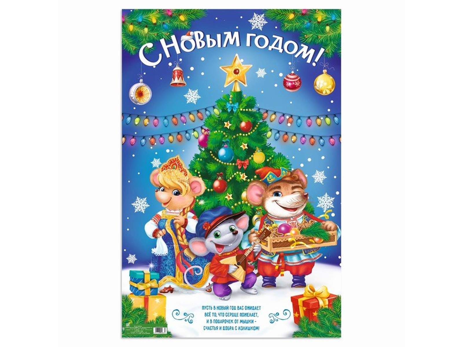 Плакат "С Новым годом" мышки у елки 60*40см 4336683
