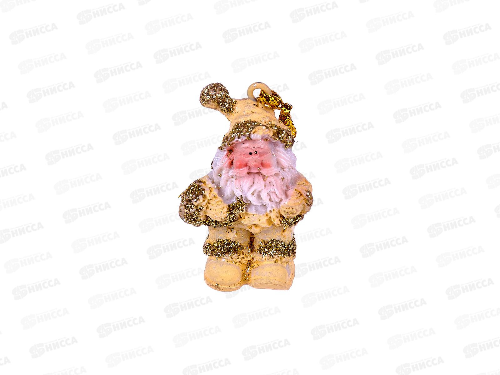 Подвеска Дед Мороз-гном 4см, 4цв. полистоун блест., Е5045