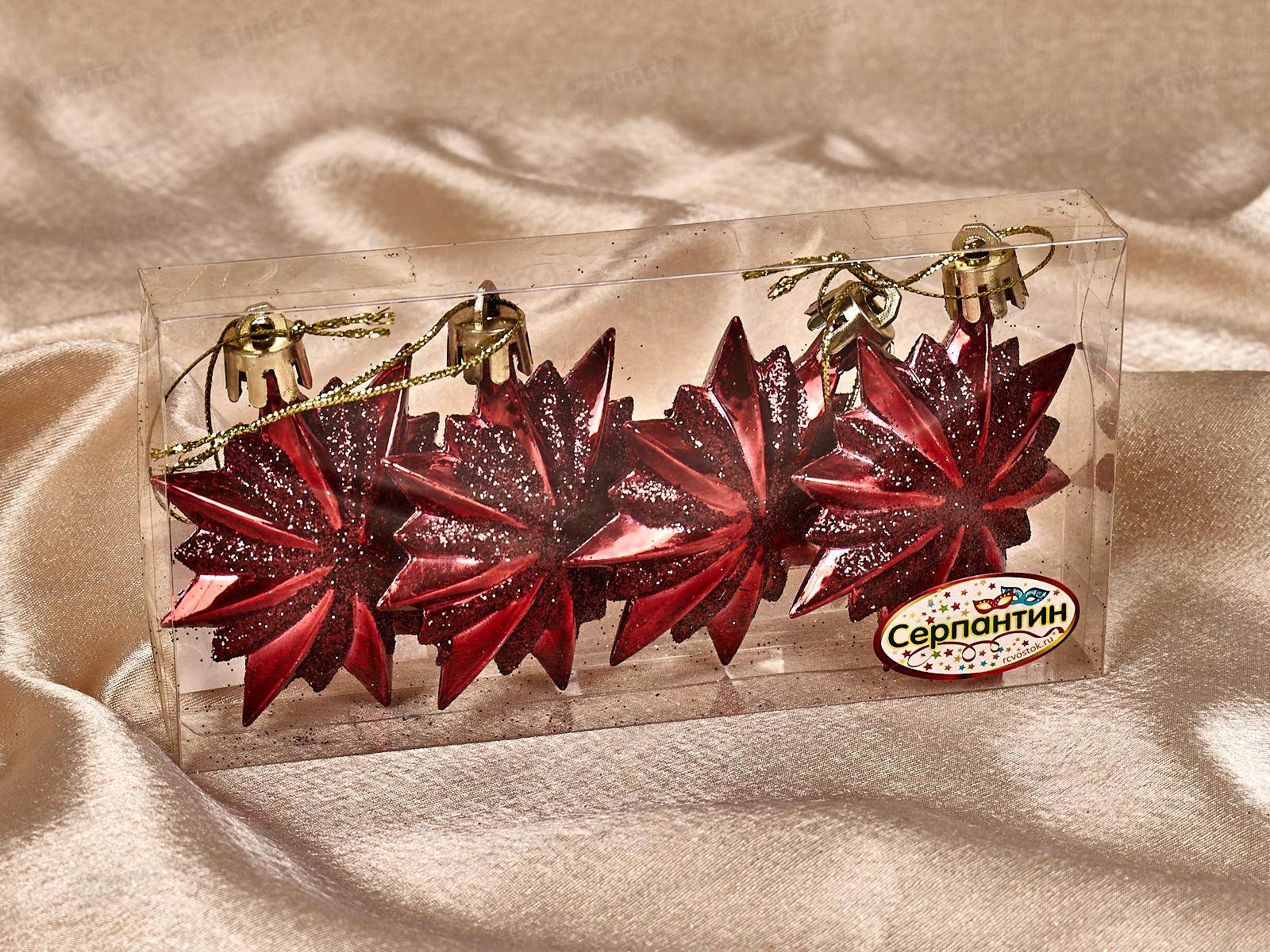 Набор елочных украшений 4шт Звезда остроконечная 6см рубин 916-0172