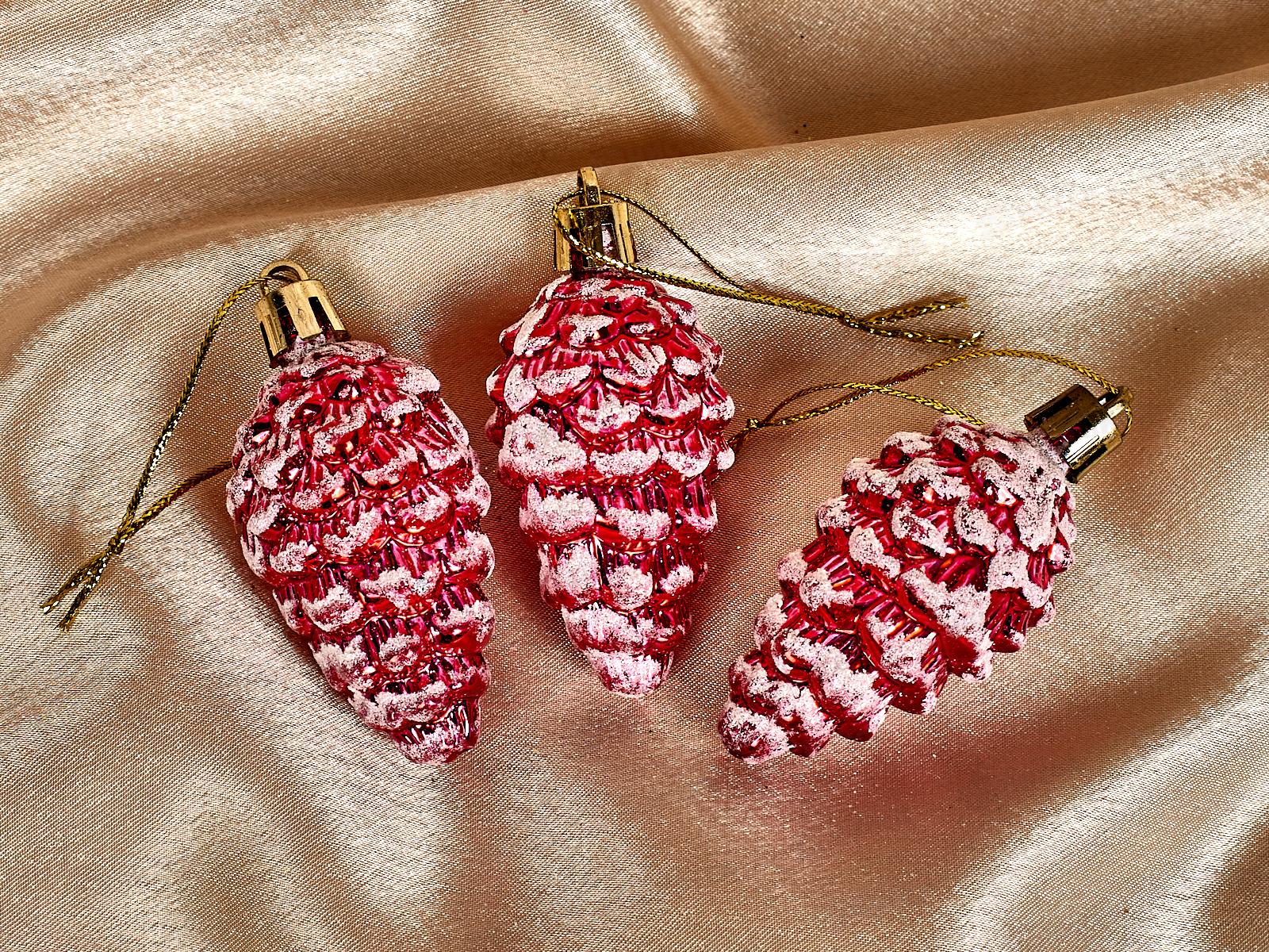Набор елочных украшений 3шт Шишечки в инее 5,5см красный 916-0252
